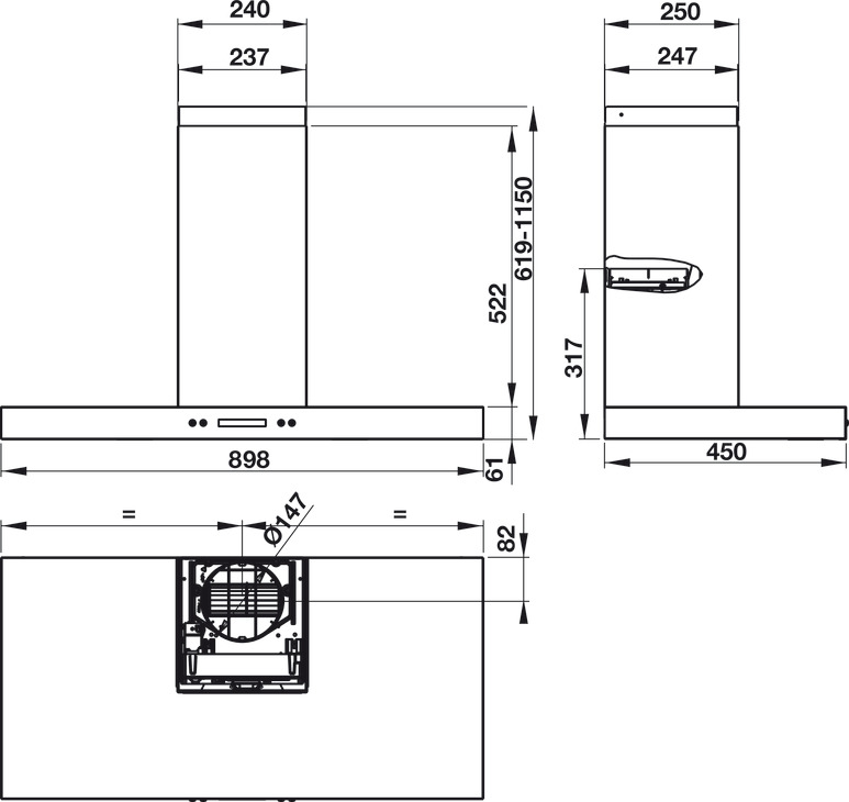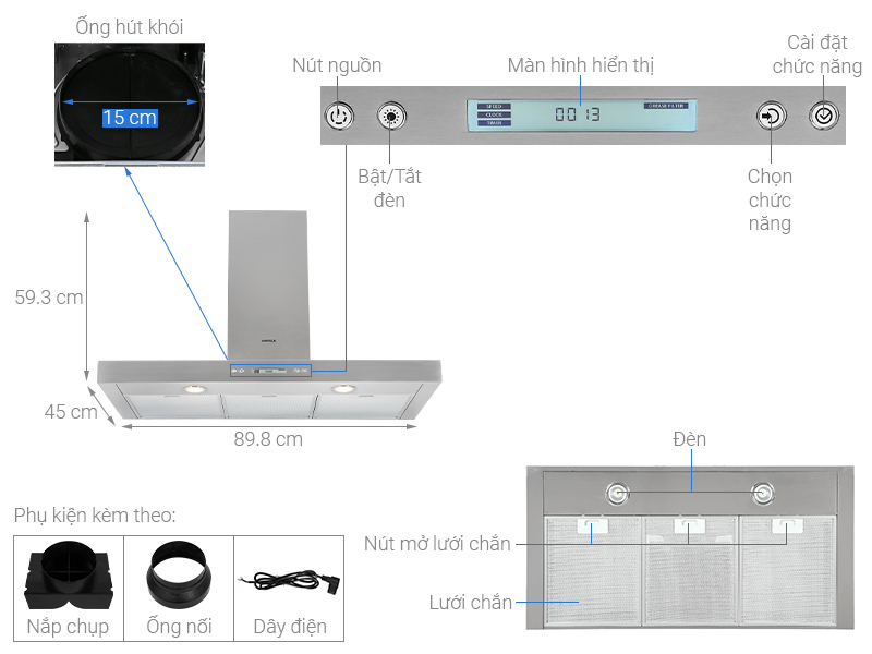Máy hút mùi áp tường chữ T Inox 90cm Hafele HH-WI90B | 539.81.175