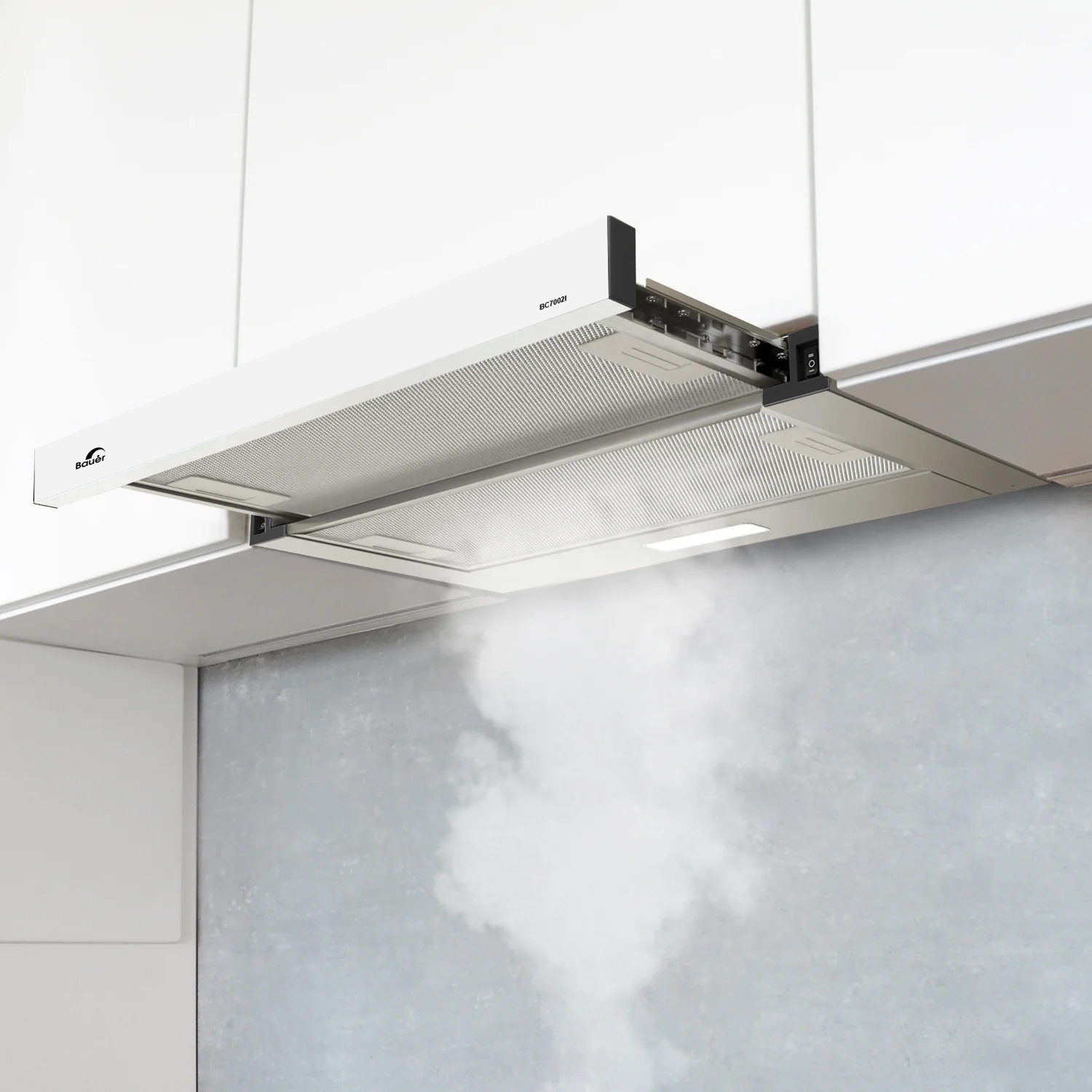 Máy hút mùi âm tủ phím bấm kính trắng 70cm Bauer BC7002I