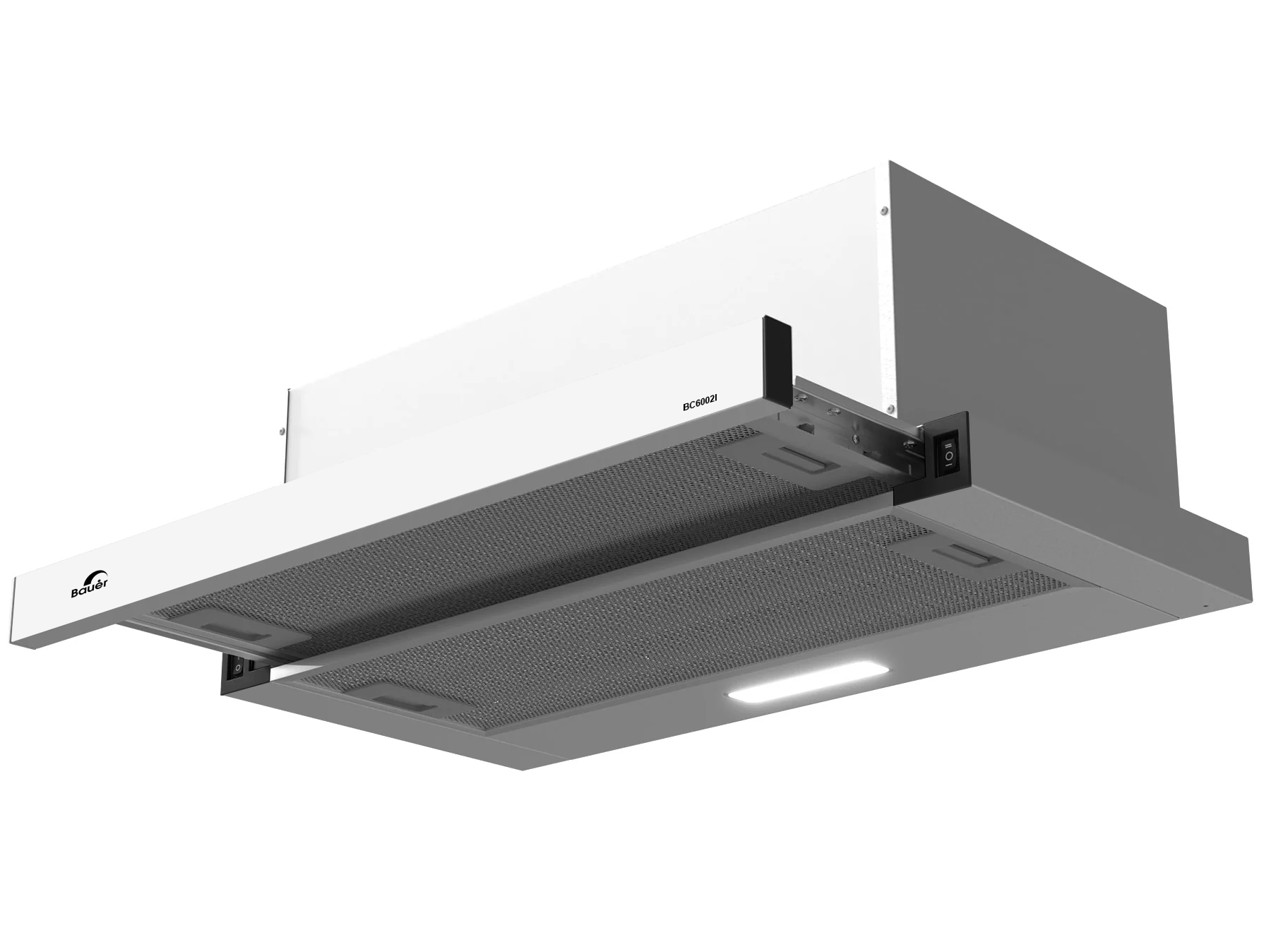 Máy hút mùi âm tủ phím bấm kính trắng 60cm Bauer BC6002I