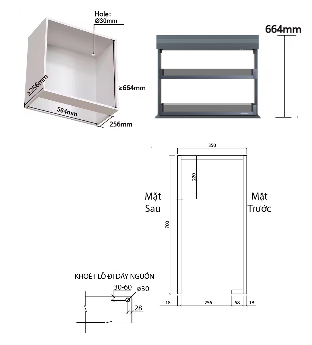 Giá gia vị nâng hạ điện tự động cảm ứng hợp kim nhôm màu ghi đậm vách kính 700mm Eurogold EMV2070 | ESL8870