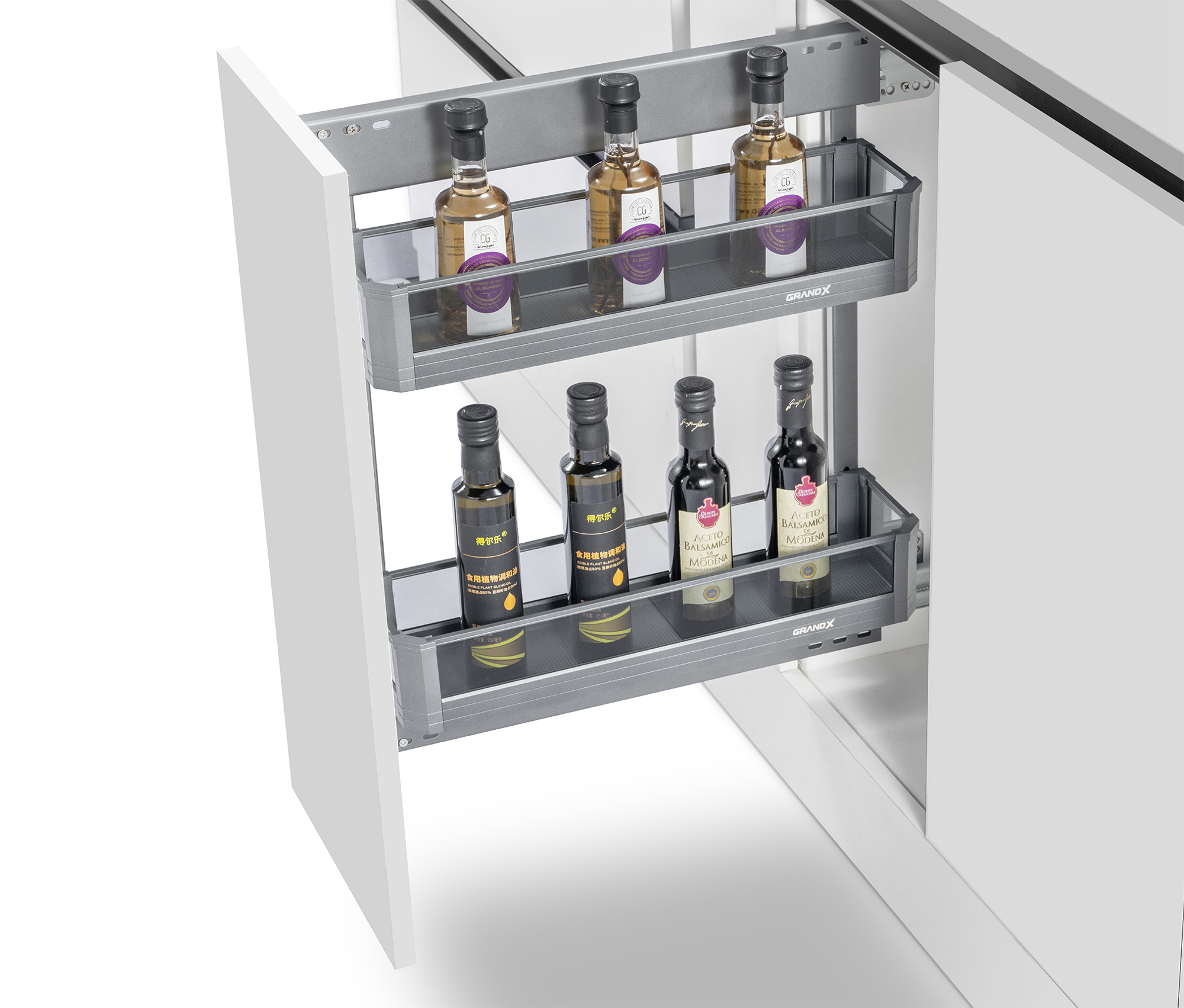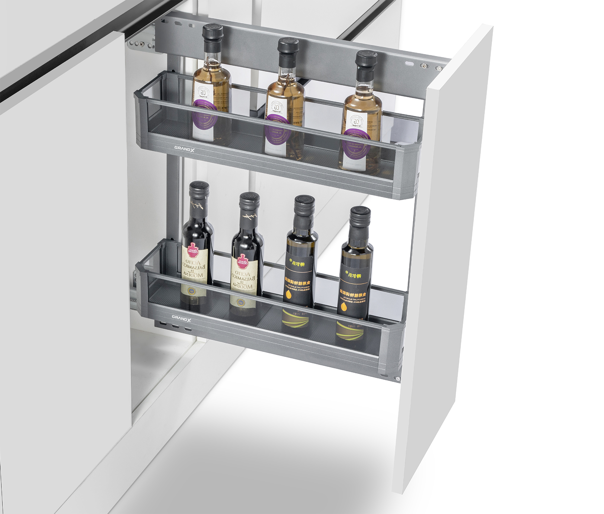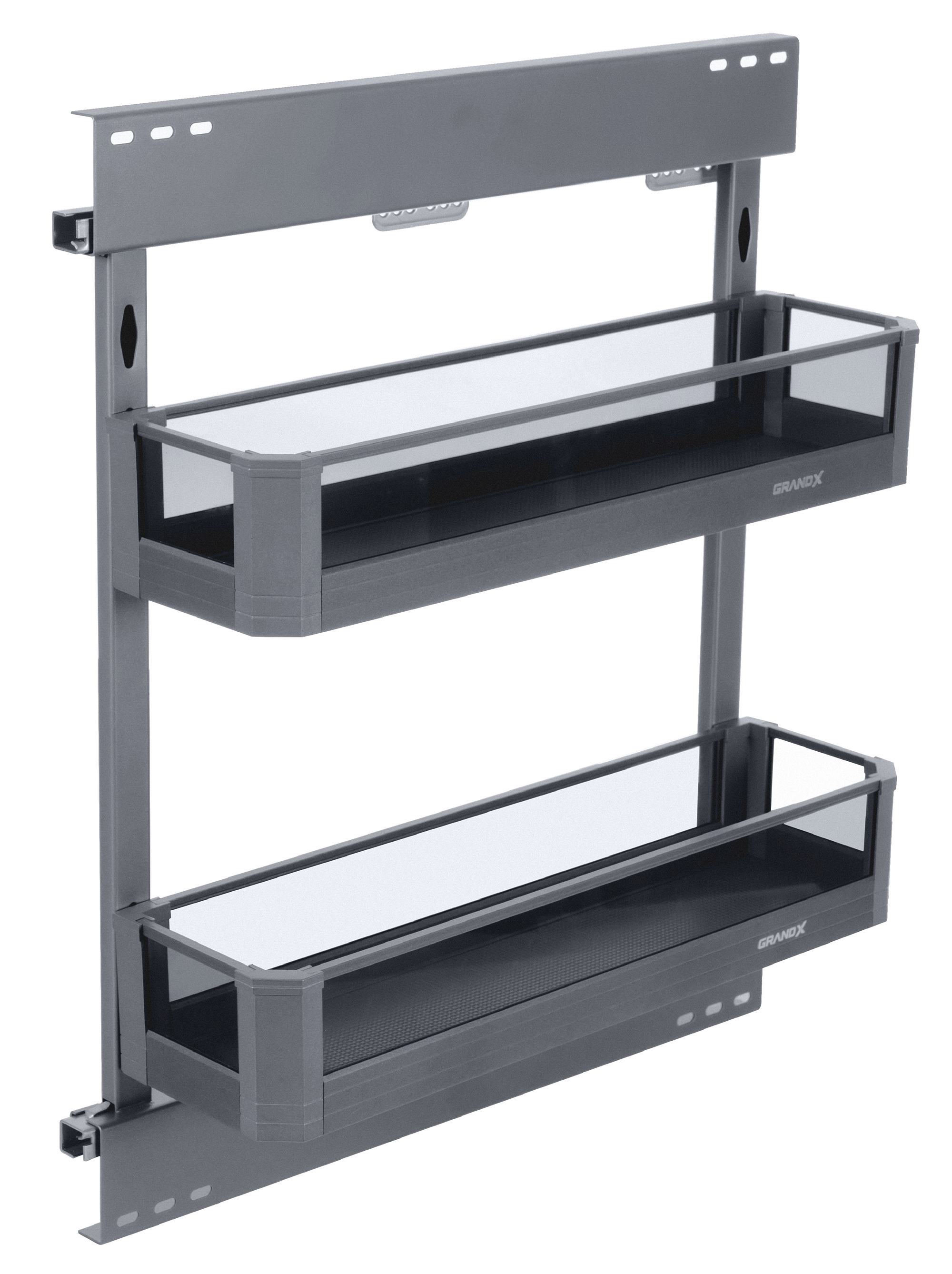 Giá gia vị khay nhôm vách kính ray lắp vách 200mm GrandX XU.200G