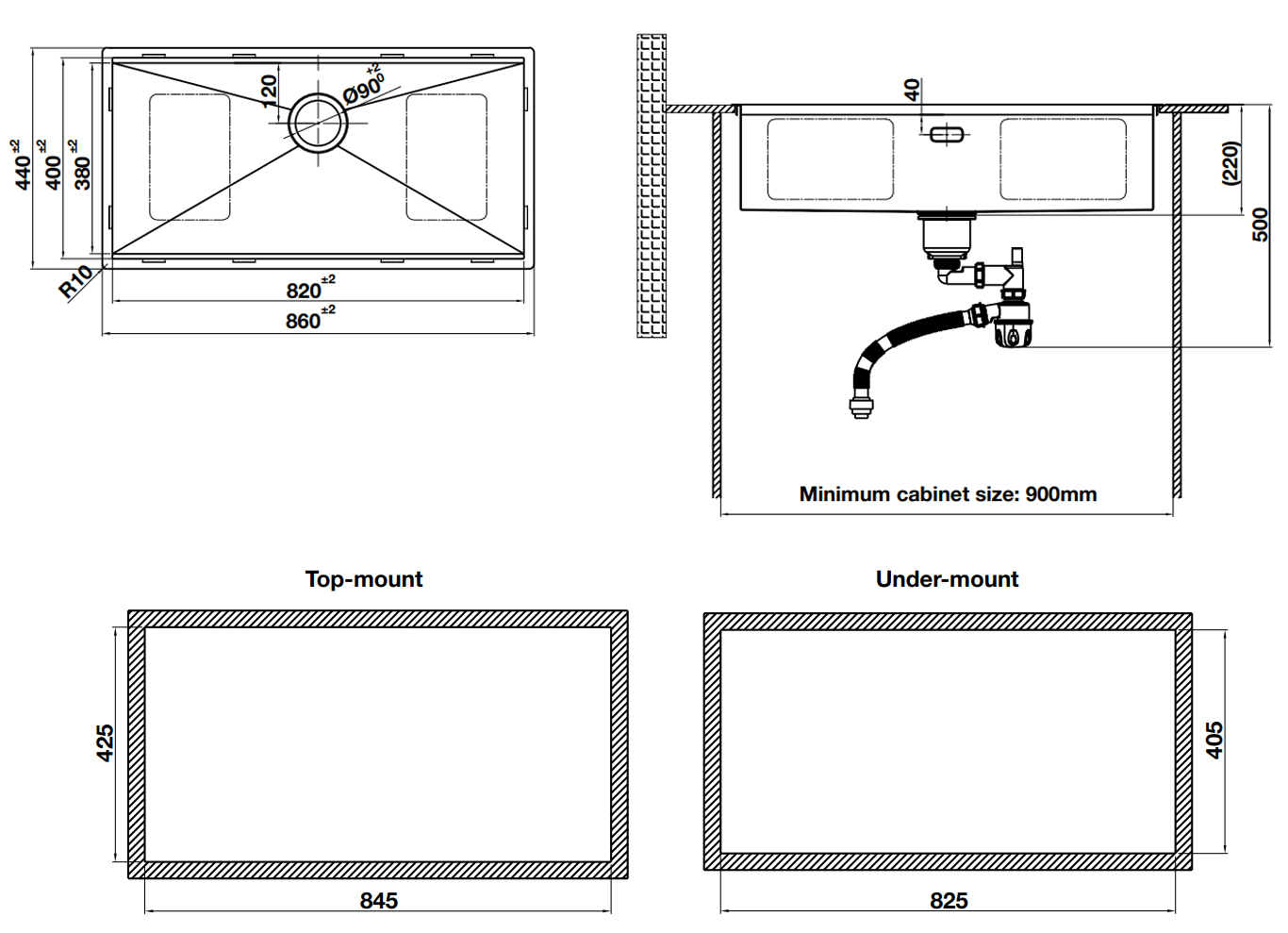 Chậu rửa 1 hố Inox 304 bề mặt vân nổi chống trầy xước Hafele WS R0 HS24-SSN1S-8644 | 567.24.477