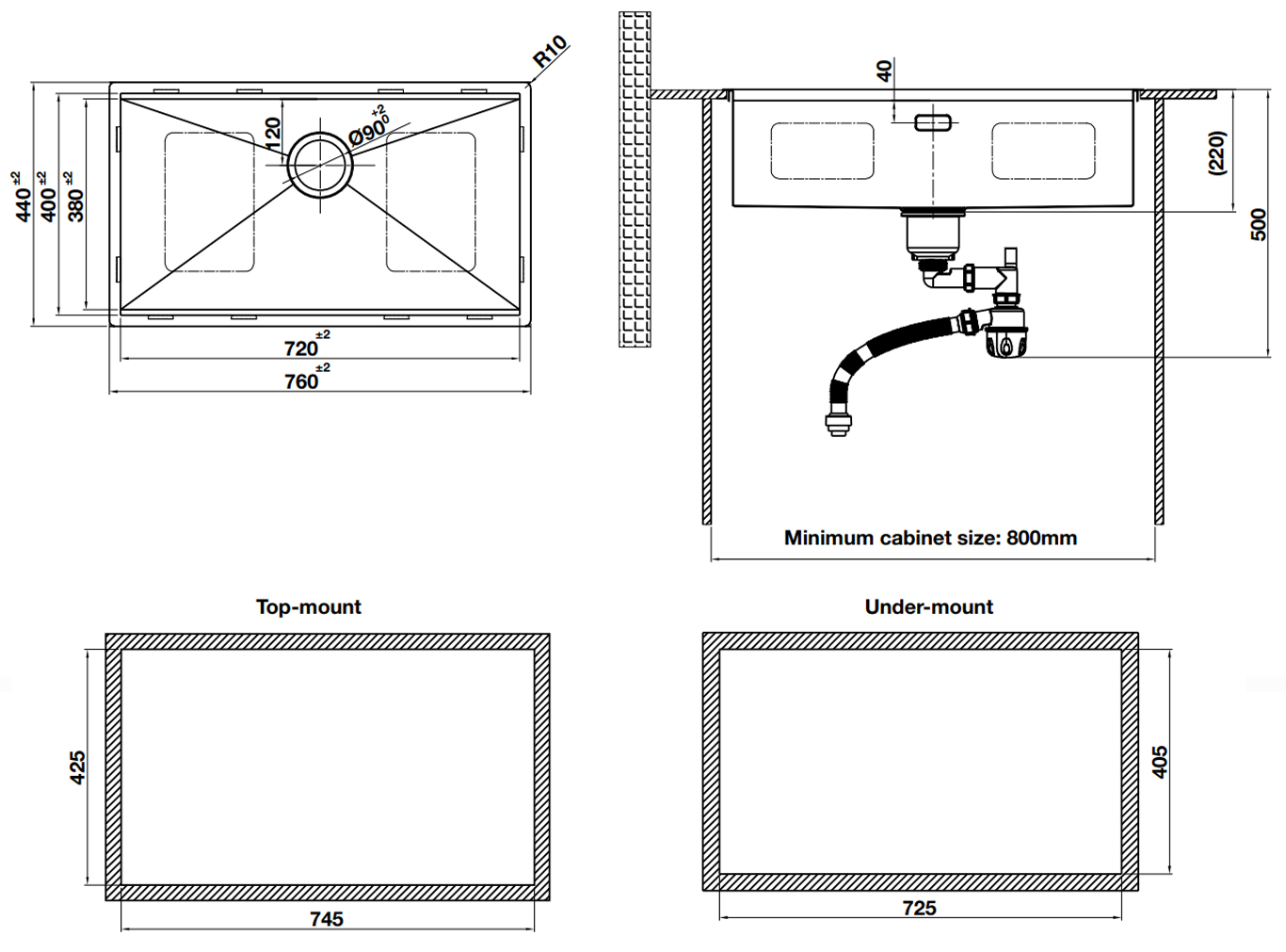 Chậu rửa 1 hố Inox 304 bề mặt vân nổi chống trầy xước Hafele WS R0 HS24-SSN1S-8644 | 567.24.477