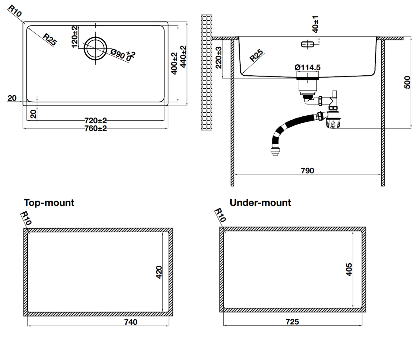 Chậu rửa 1 hố Inox 304 phủ Nano PVD màu Đen (Matt Black) Hafele R25 HS25-SSN1S-760 | 567.24.483