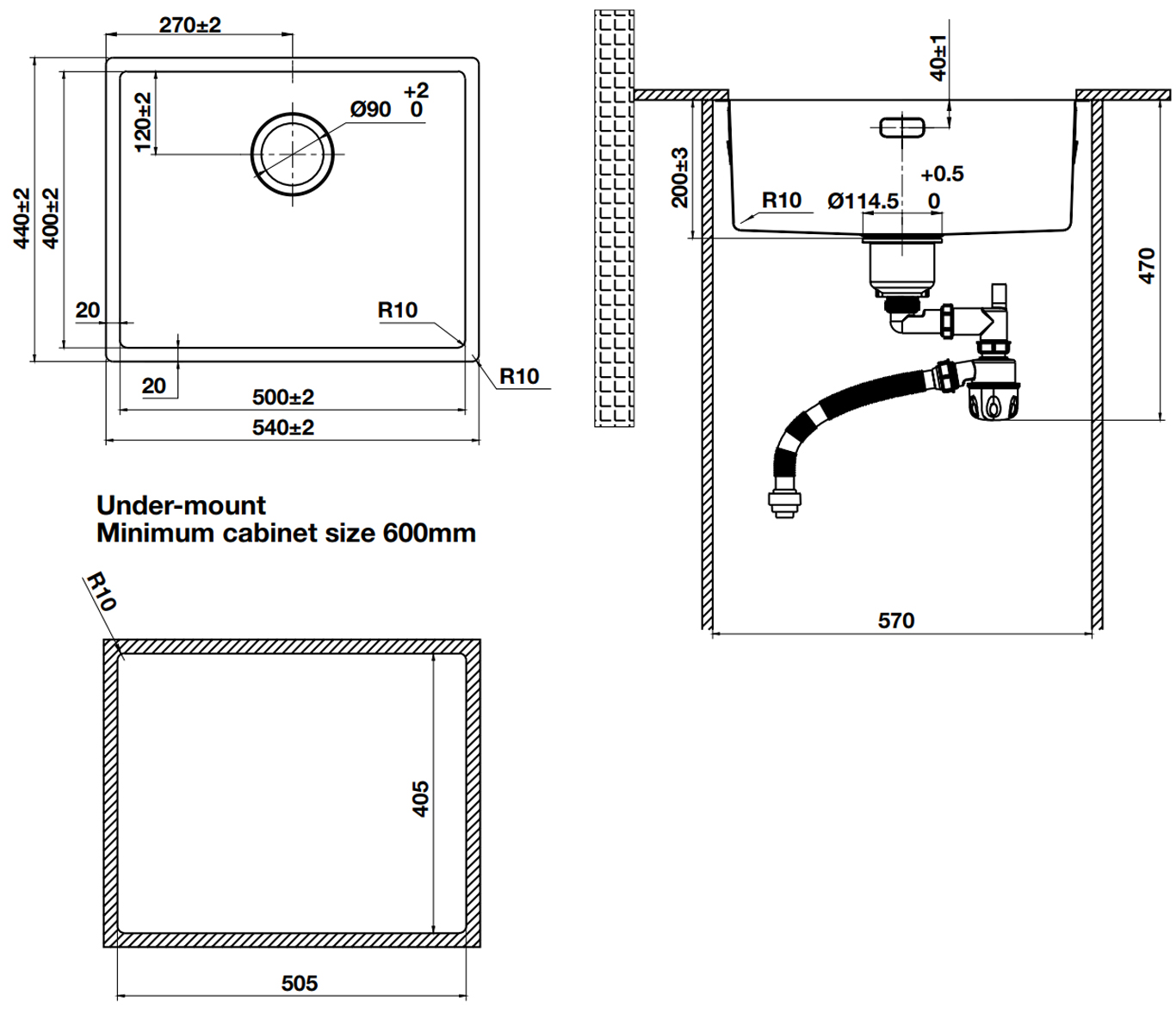 Chậu rửa 1 hố Inox 304 phủ Nano PVD màu Đen (Matt Black) Hafele R10 HS25-SSN1S-540 | 567.24.481