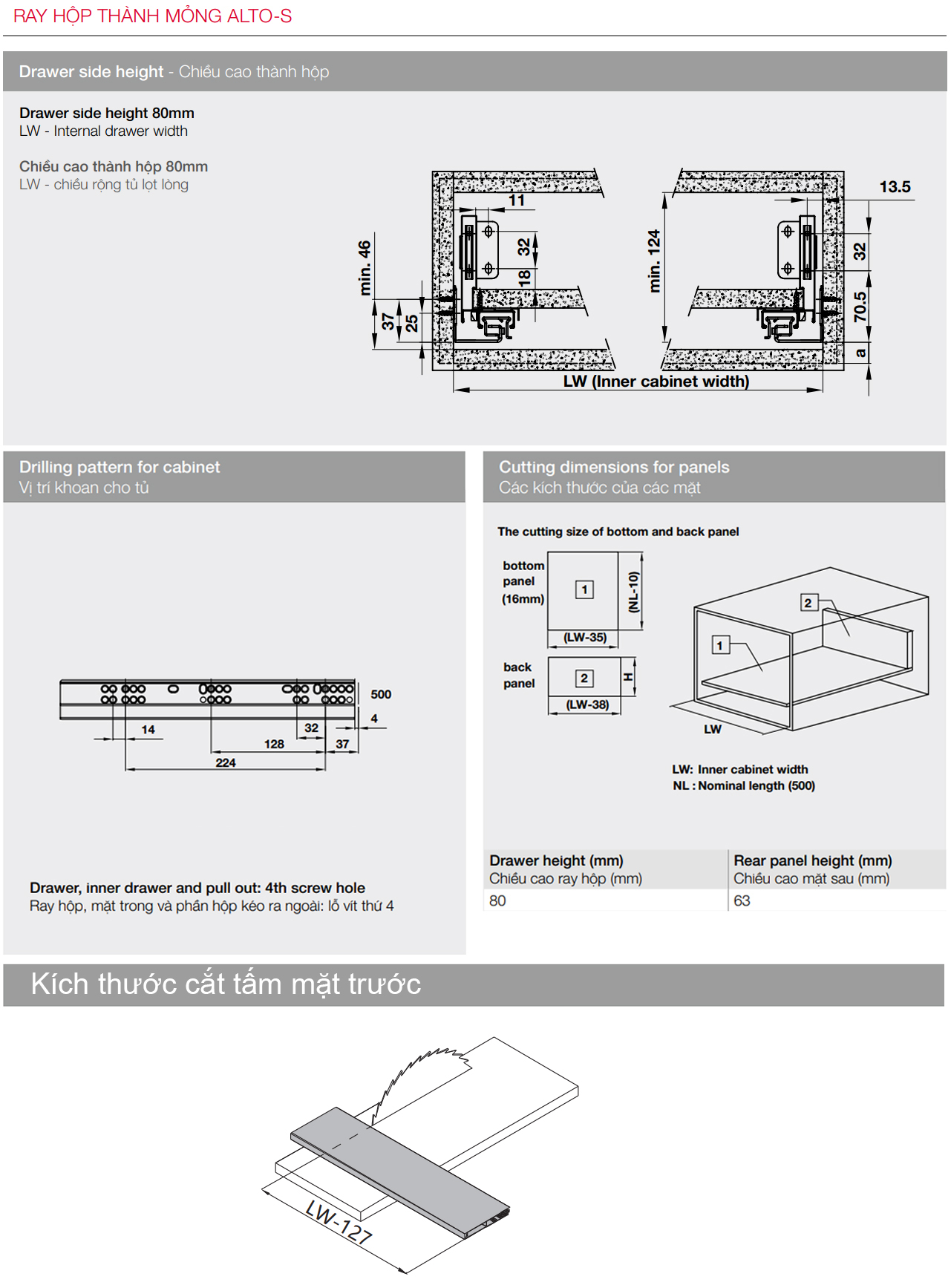 Ray hộp âm thành mỏng ALTO-S màu trắng mờ chiều cao 80mm Hafele 552.55.724