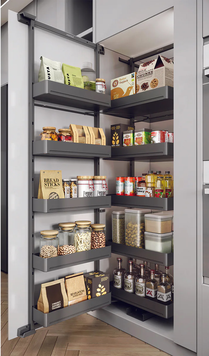 Tủ đồ khô cánh kéo 5 tầng màu than chì 400mm Utensio Plus H2 Hafele 504.68.390
