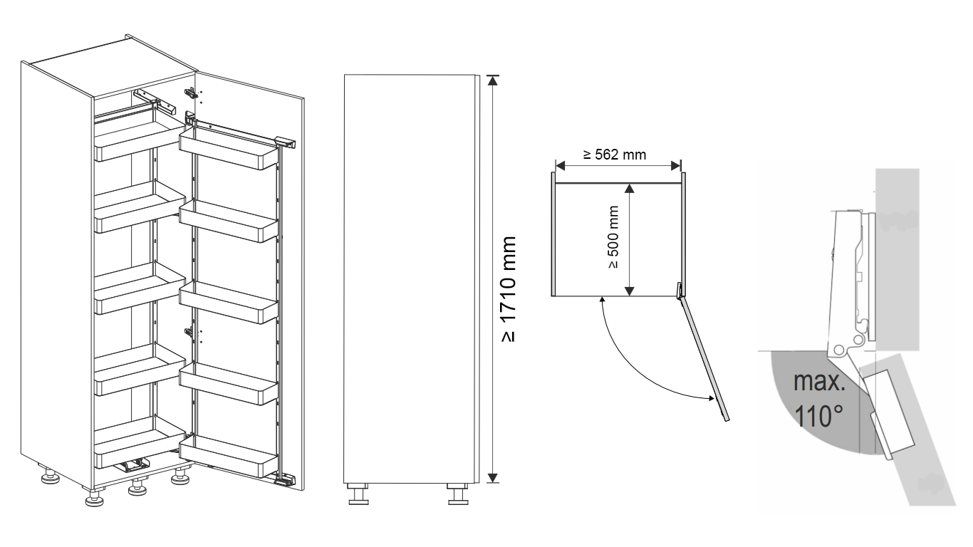 Tủ đồ khô cánh mở 5 tầng màu than chì 600mm Utensio Plus H2 Hafele 504.68.385
