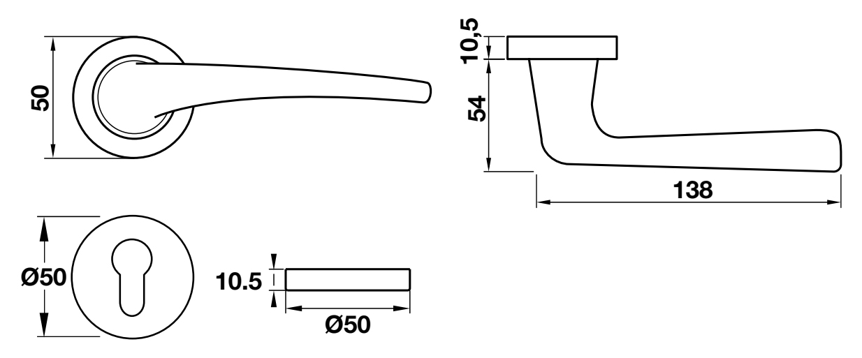 Tay nắm gạt cửa phòng có nắp che đồng thau màu Chrome mờ Hafele 901.99.598