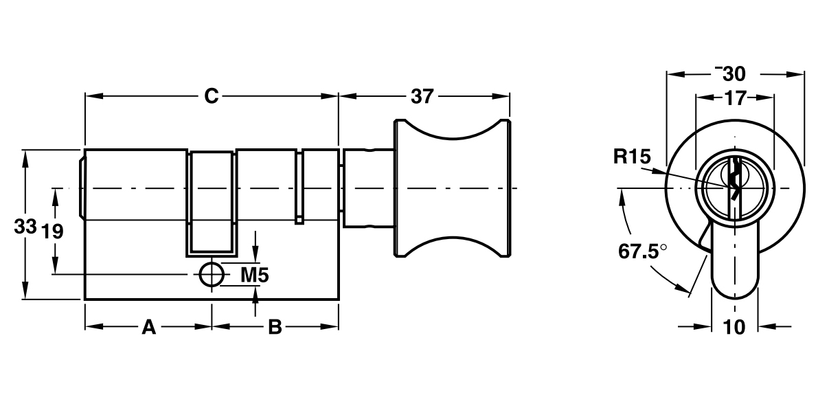 Ruột khóa 1 đầu chìa 1 đầu vặn 65mm đồng thau màu niken mờ Hafele 916.96.311