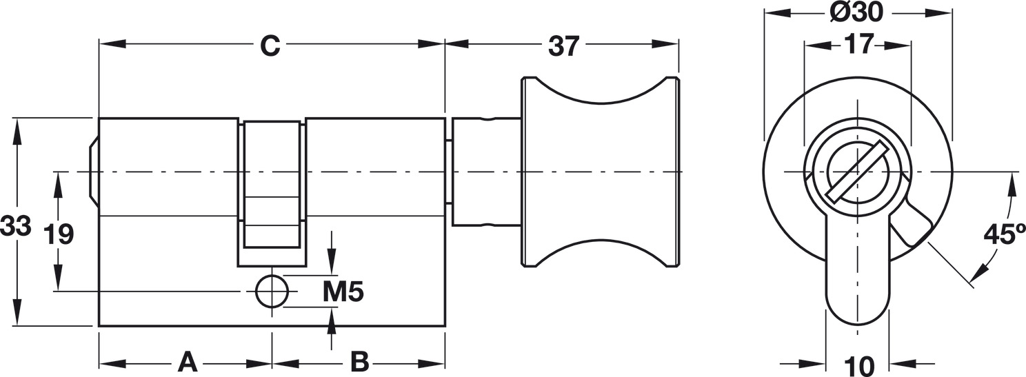 Ruột khóa cho cửa phòng vệ sinh 71mm đồng thau màu đen mờ PVD Hafele 916.91.932