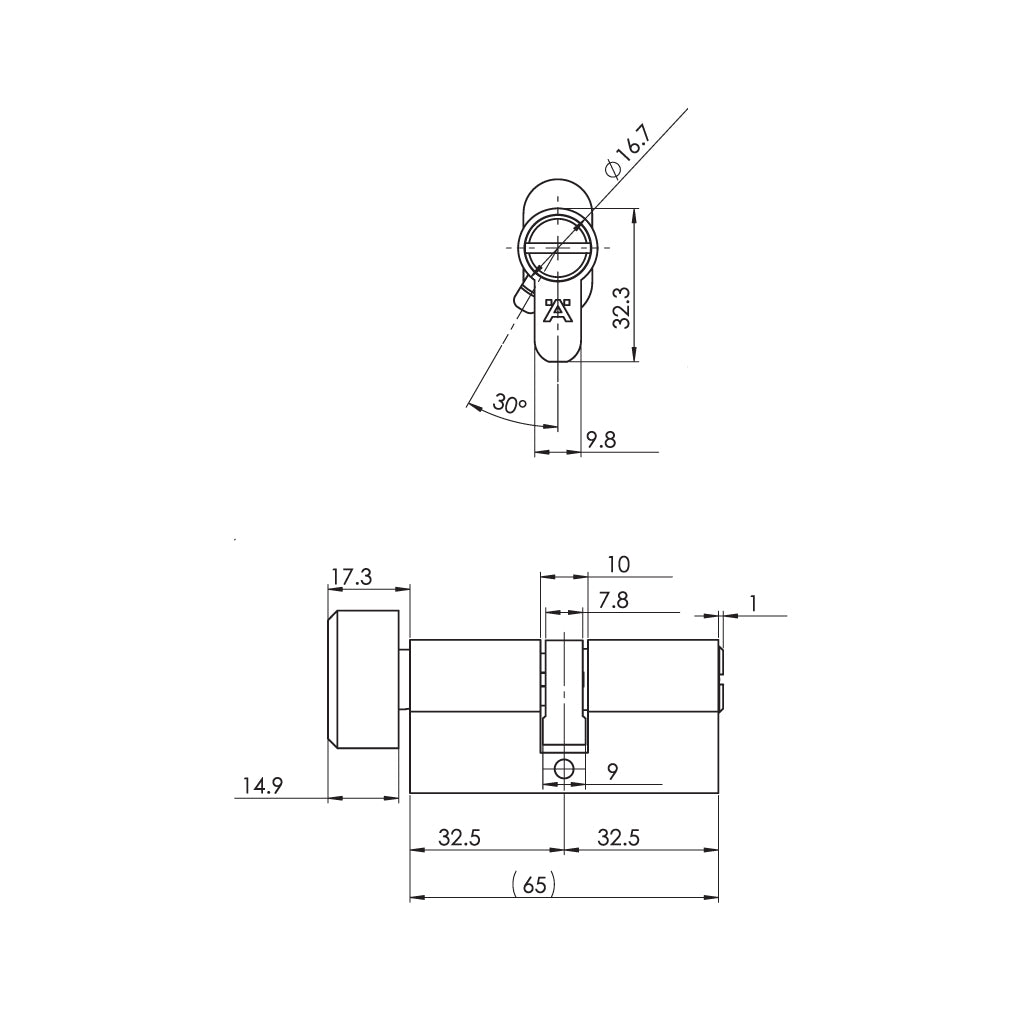 Ruột khóa 1 đầu chìa 1 đầu vặn 65mm đồng thau màu niken mờ Hafele 489.56.250