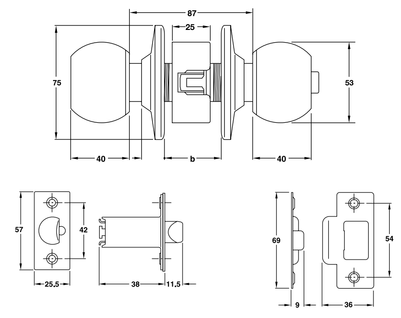 Khóa tay nắm tròn cho cửa chính Inox 304 màu đen mờ Hafele 911.83.563