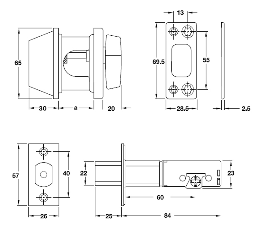 Khoá cóc 1 đầu chìa 1 đầu vặn loại nhỏ Inox 304 mờ Hafele 911.22.395