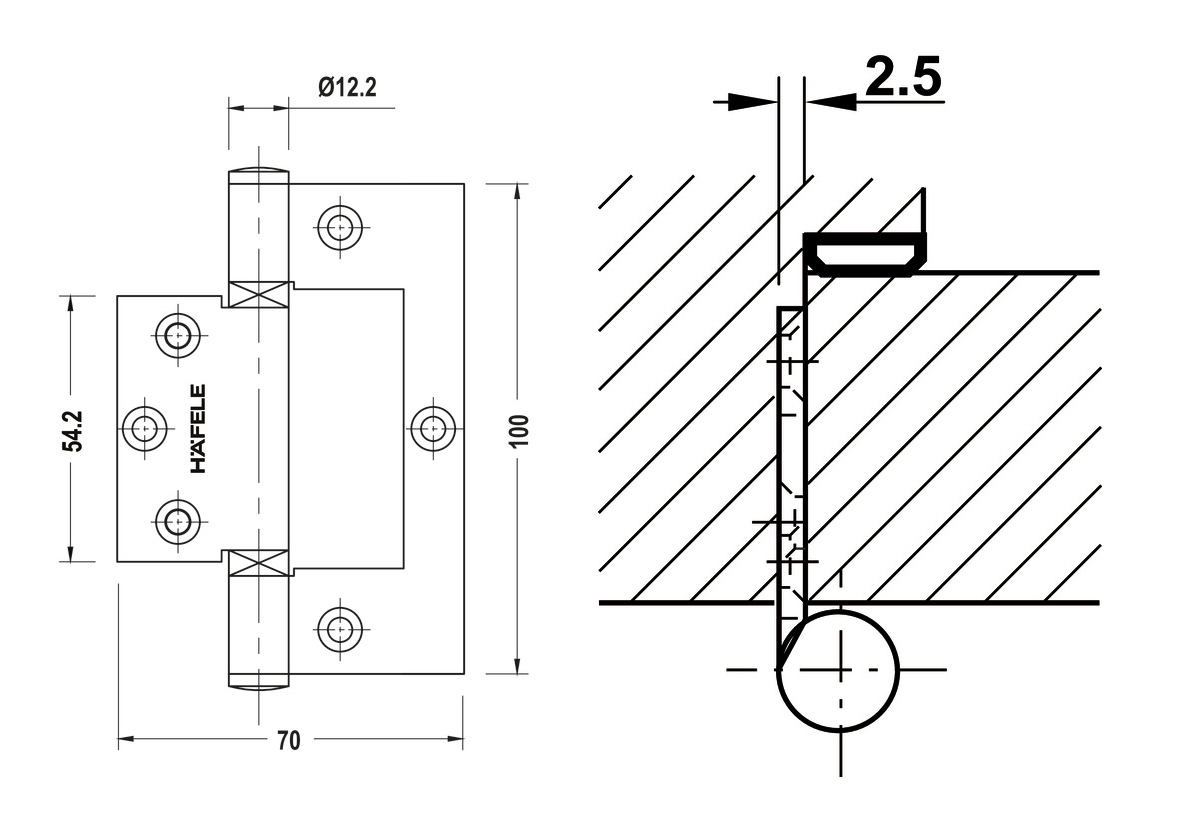 Bản lề âm dương 45kg Inox 304 mờ Hafele 926.96.100
