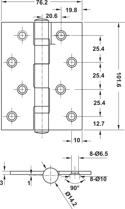Bản lề lá 2 vòng bi 102x76x3mm 66kg Inox 304 mờ Hafele 489.05.021