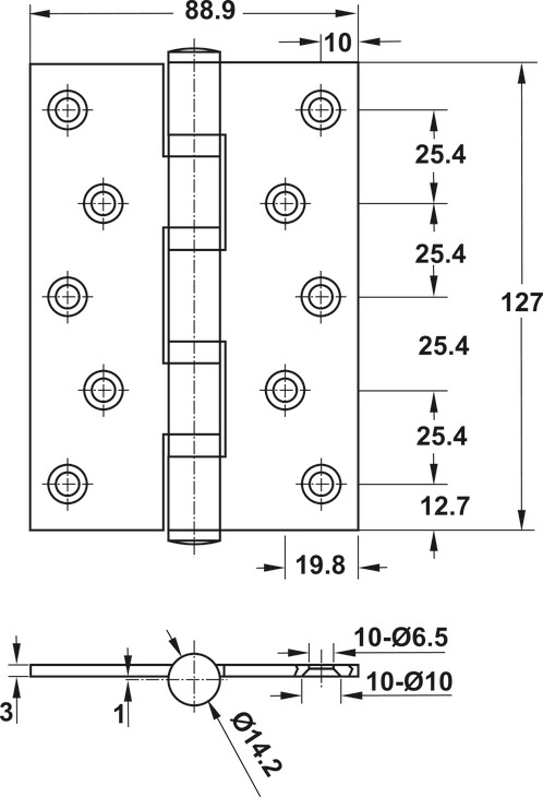 Bản lề lá 4 vòng bi 127x89x3mm 66kg Inox 304 mờ Hafele 489.05.025
