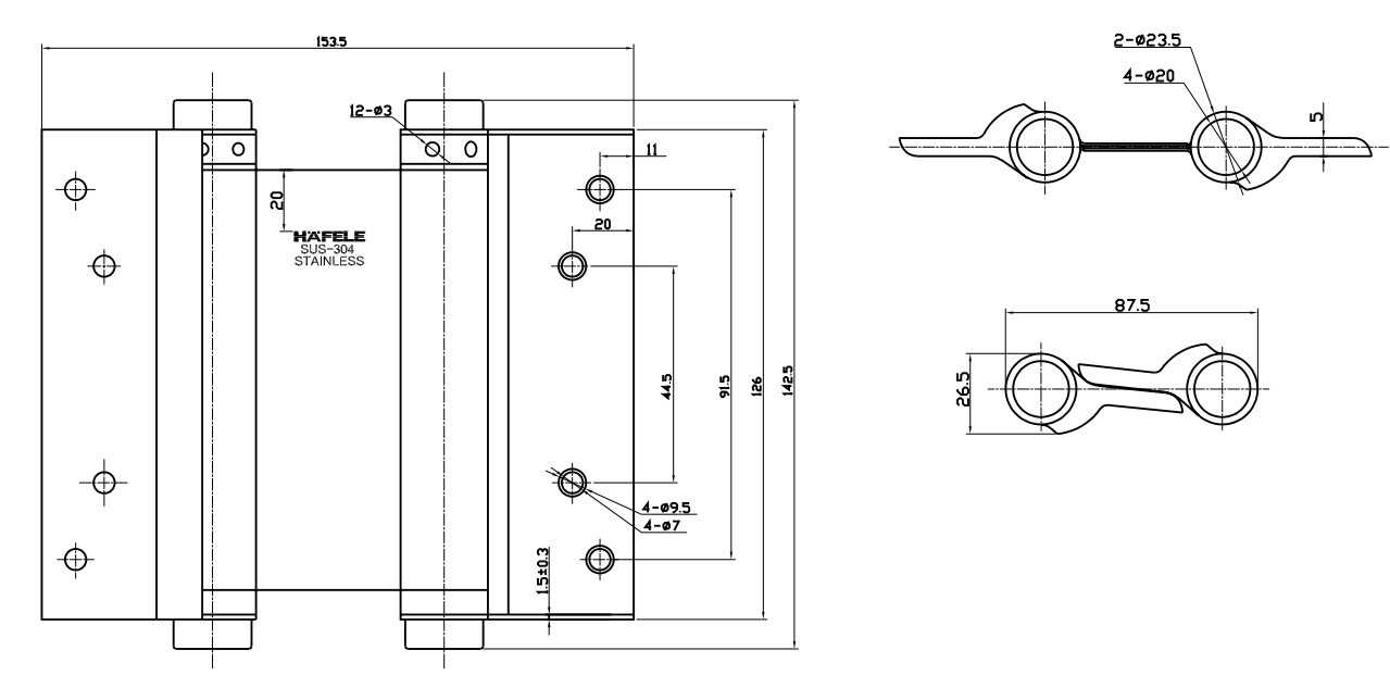 Bản lề bật 2 chiều 5“ tải trọng 20-25kg Inox 304 mờ Hafele 927.97.060