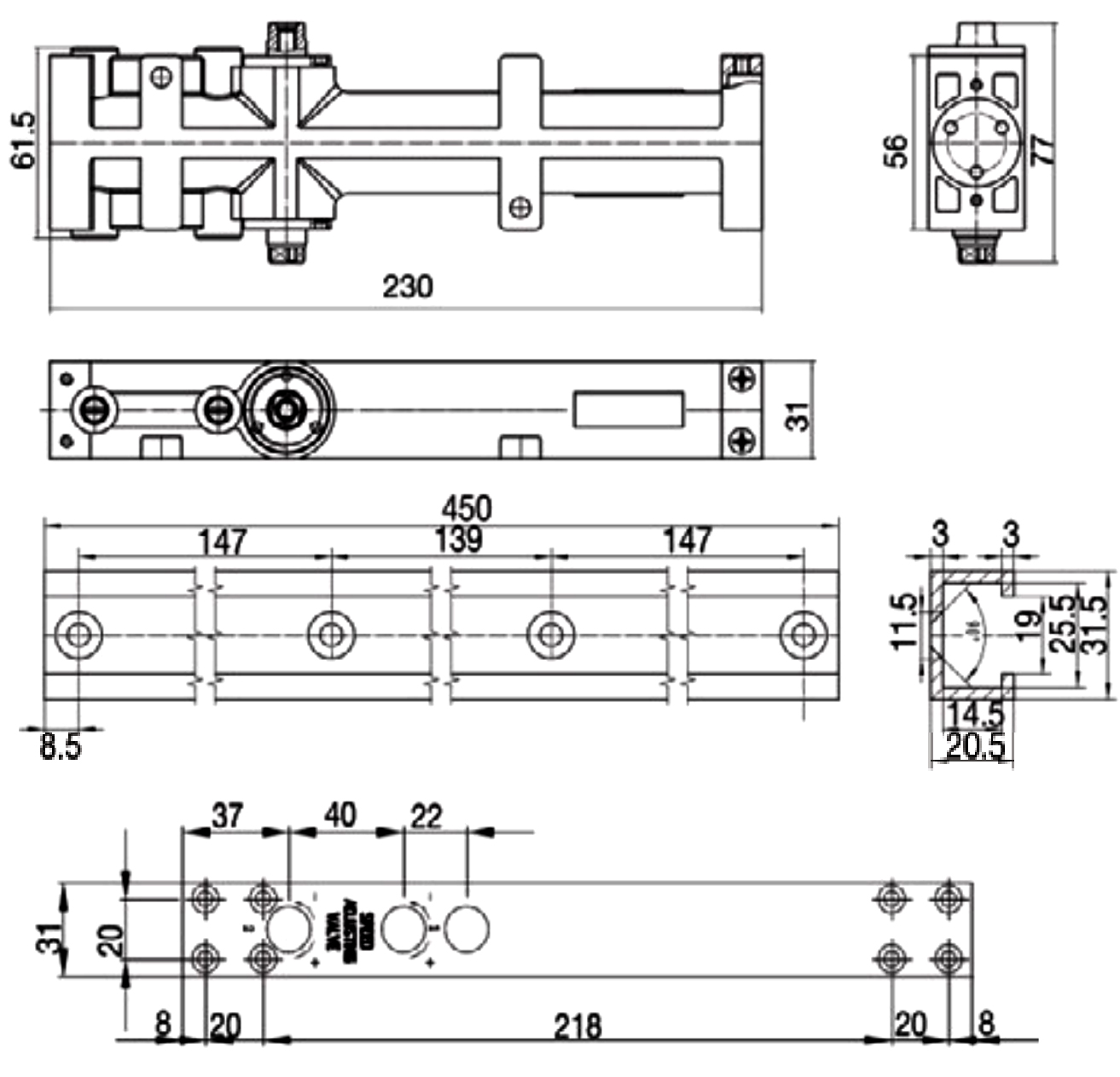 Thiết bị đóng cửa tự động lắp âm DCL-30 80kg có chức năng giữ cửa màu bạc Hafele 931.84.921