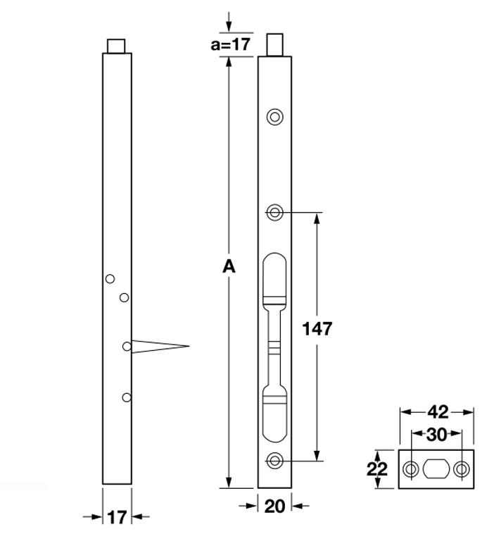 Chốt âm cửa gỗ Inox 304 mờ 300mm Hafele 911.62.183