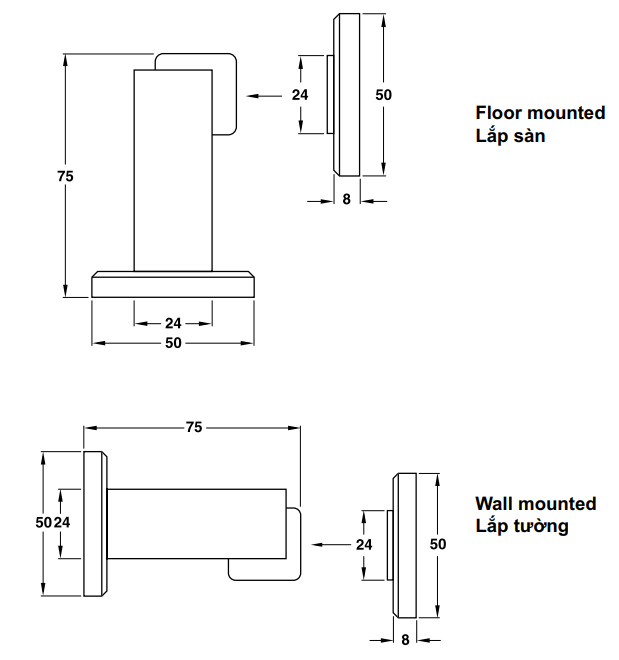 Chặn cửa gắn tường Inox 304 màu đen mờ Hafele 938.10.403
