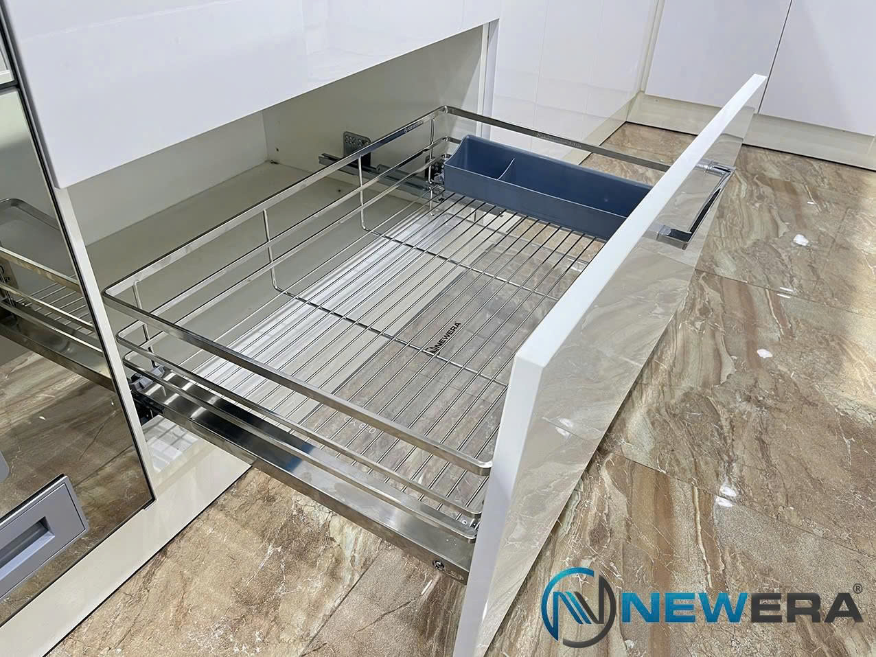 Giá xoong nồi Inox 304 nan dẹt cánh kéo/mở 750mm Newera NE699.750L
