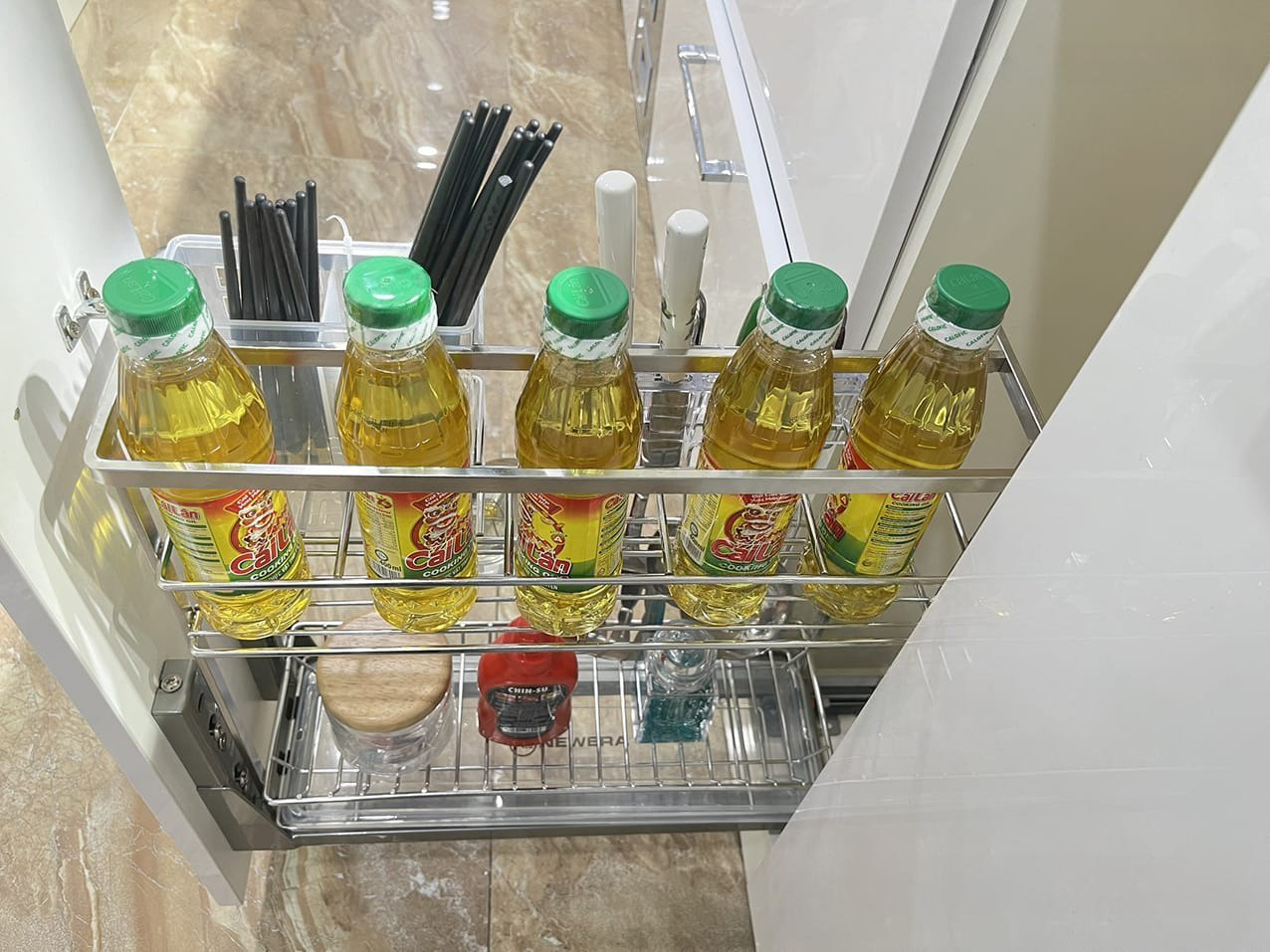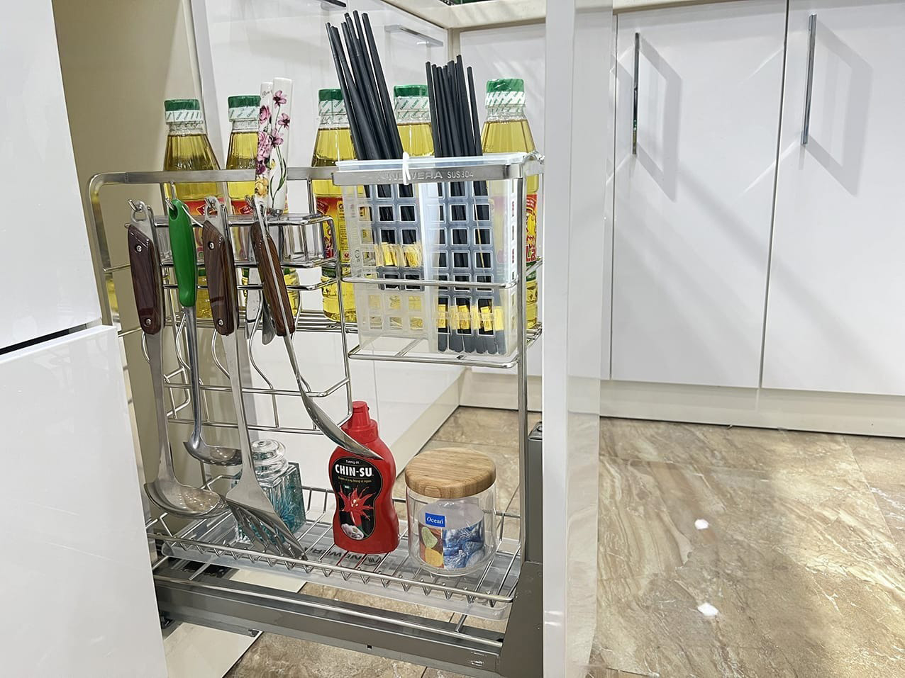Giá chai lọ, dao thớt, gia vị
