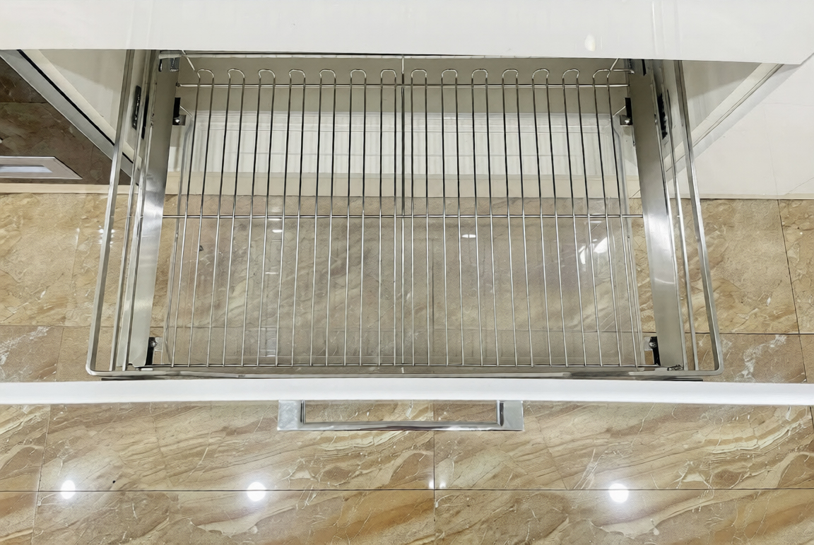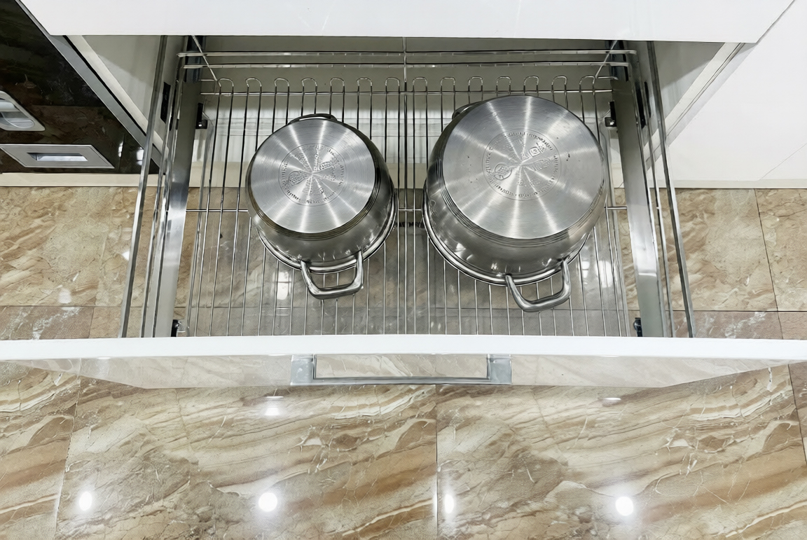 Giá xoong nồi Inox 304 nan dẹt cánh kéo/mở 600mm Newera NE699.600PL