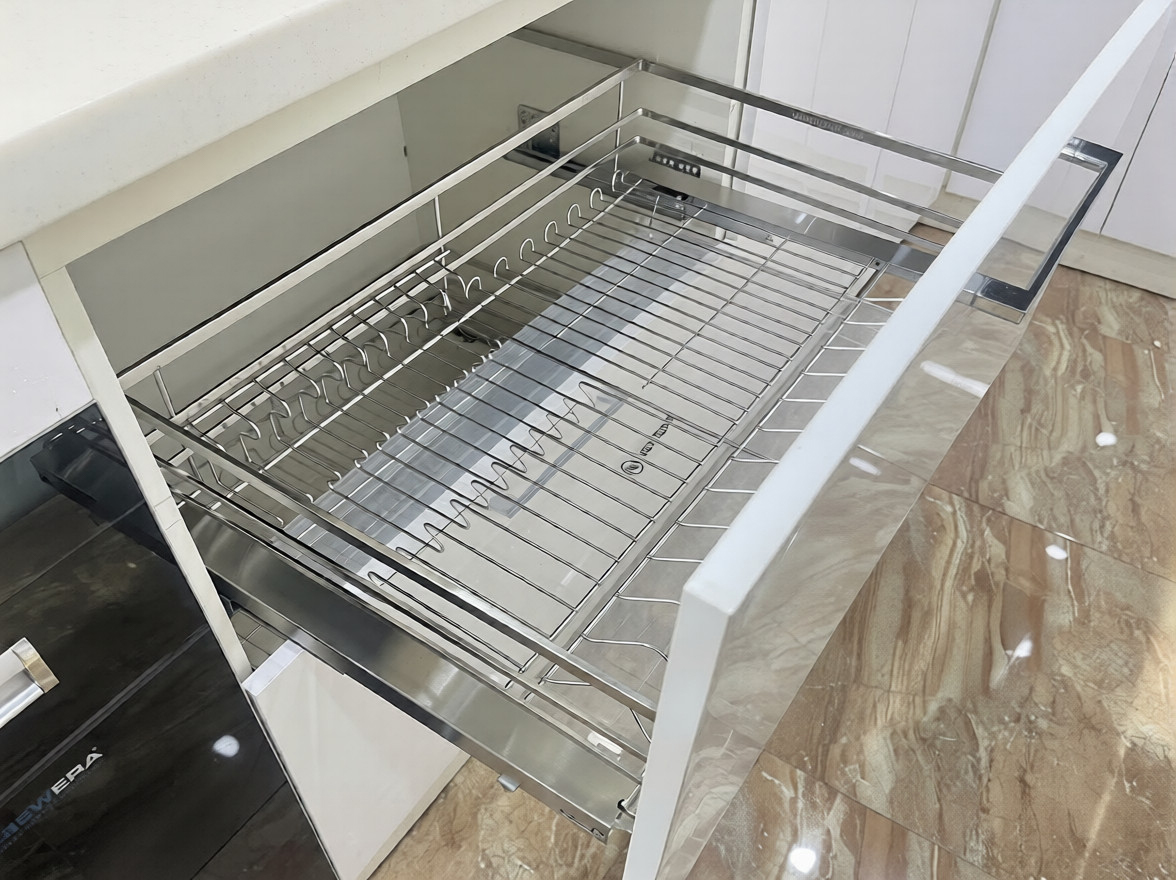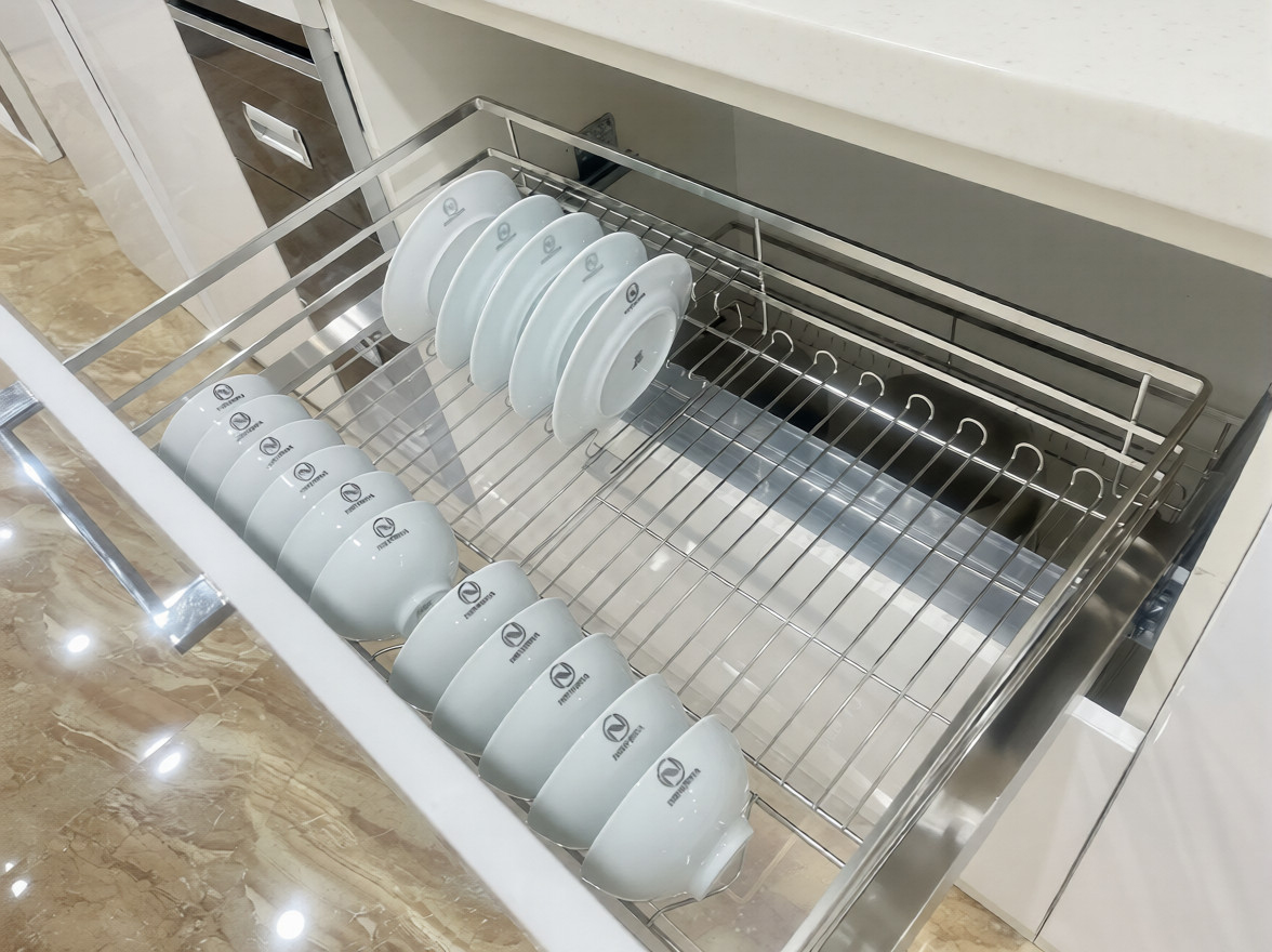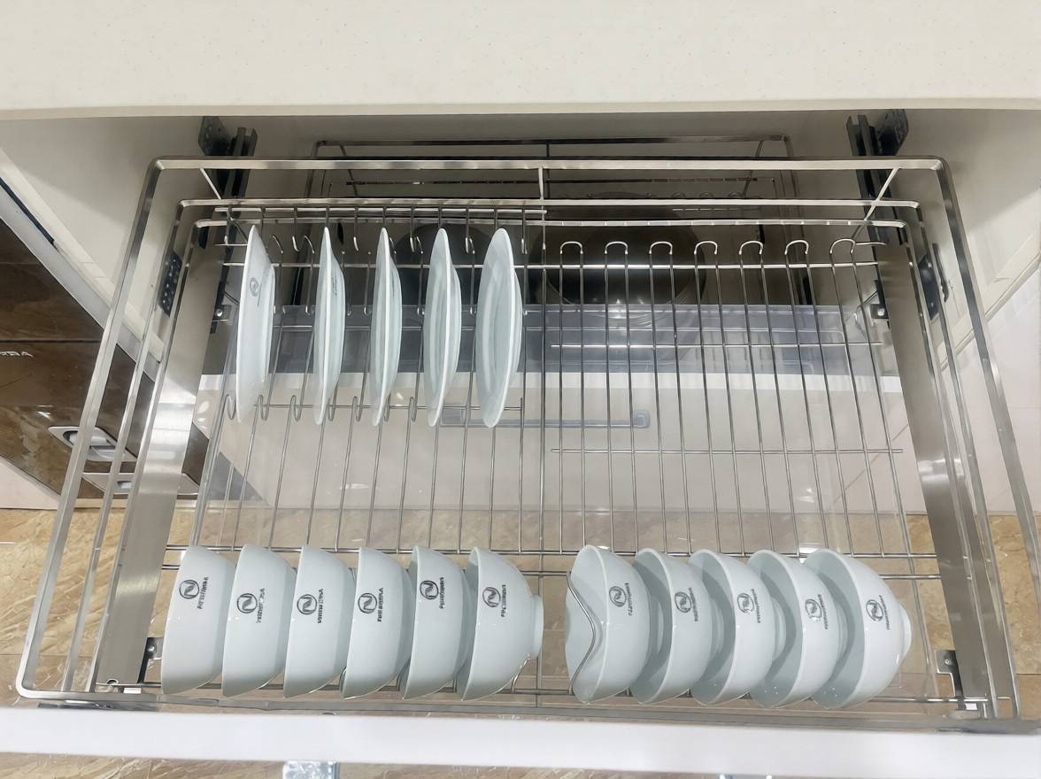 Giá bát đĩa xoong nồi đa năng Inox 304 nan dẹt cánh kéo/mở 600mm Newera NE689.600PL