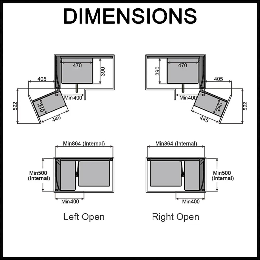 Kệ góc xoay liên hoàn Inox 304 hộp 304 mở phải Newera NE455.900MR