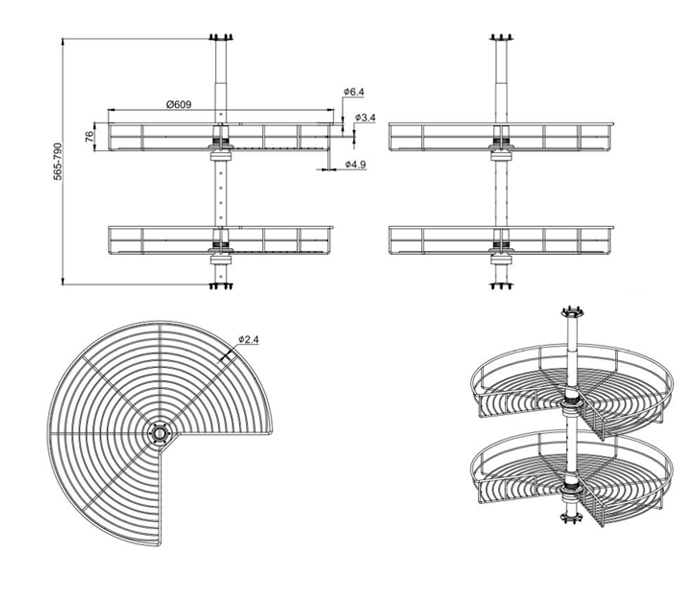 Mâm xoay 270º Inox 304 nan tròn Newera NE355.270