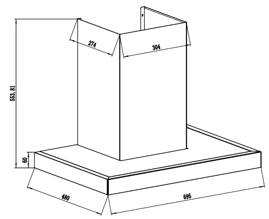 Máy hút mùi áp tường kính thẳng Inox 70cm Newera NE7066H