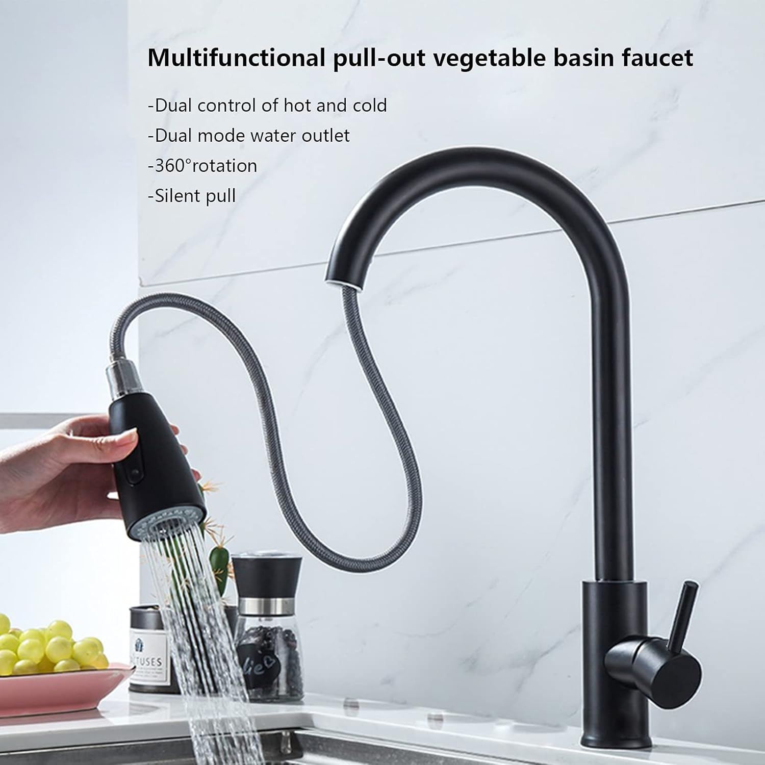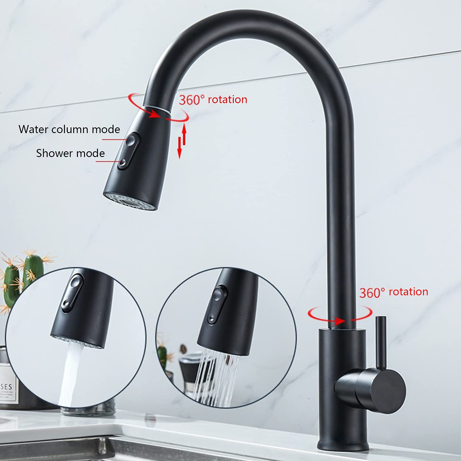 Vòi rửa nóng lạnh dây rút Inox 304 đen Newera NE99K54B