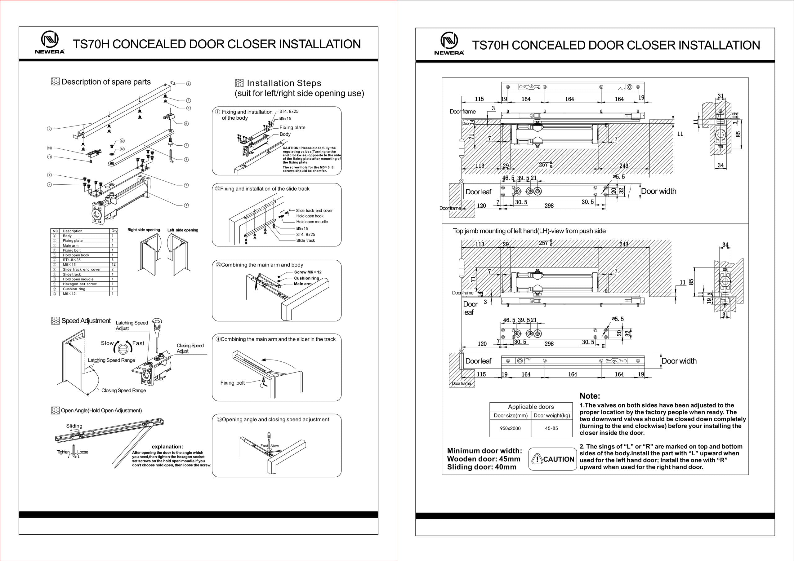 Tay co thủy lực lắp âm 45-85kg có chức năng giữ cửa Newera TS70H