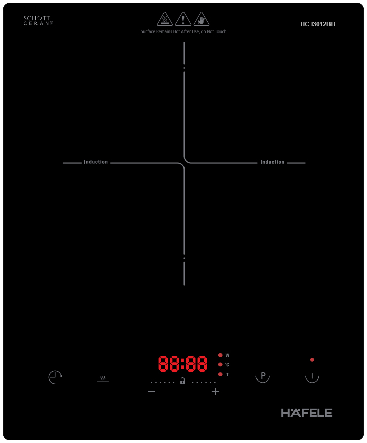 Tự động phát hiện vùng nấu và vùng nấu chỉ nóng lên khi có nồi: Các sản phẩm bếp từ của Hafele bao gồm HC-I3012BB | 536.61.760 sẽ chỉ khởi động công suất khi nồi được đặt lên vùng nấu, trường hợp chưa đặt nồi khi đã khởi động, bếp sẽ không đóng công suất và cảnh báo mã lỗi không có nồi hoặc nồi không phù hợp.