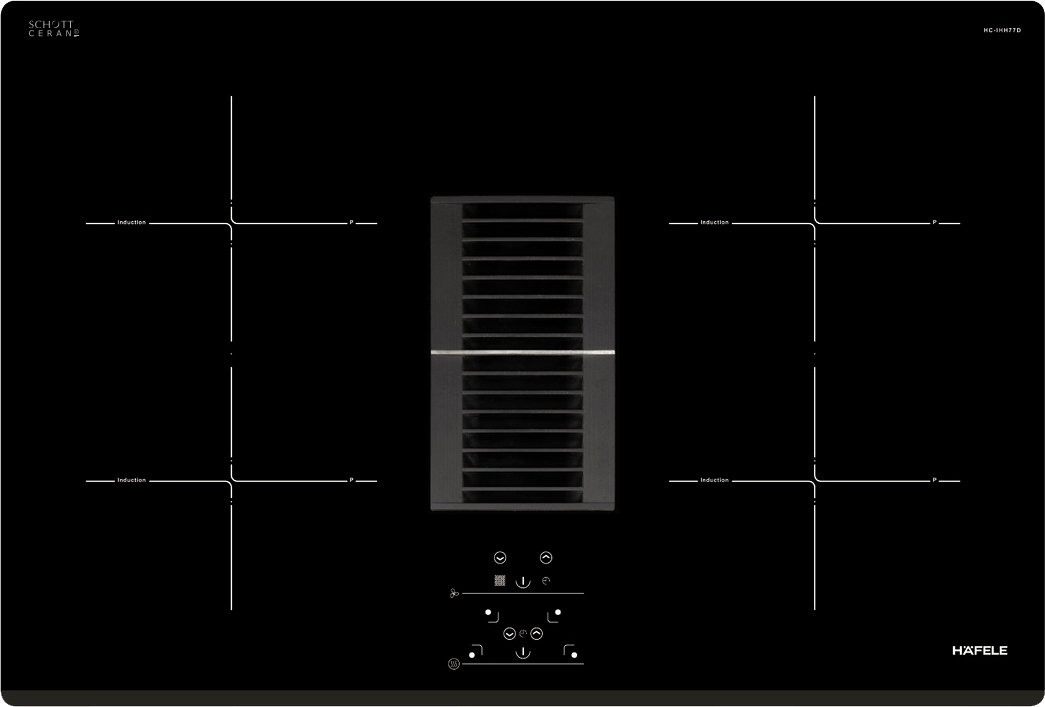 Bếp từ kết hợp hút mùi Hafele HC-IHH77D | 536.61.655 sử dụng hệ thống điều khiển điện tử tiên tiến nhất giúp mang lại công suất tối đa với độ ổn định 100%.