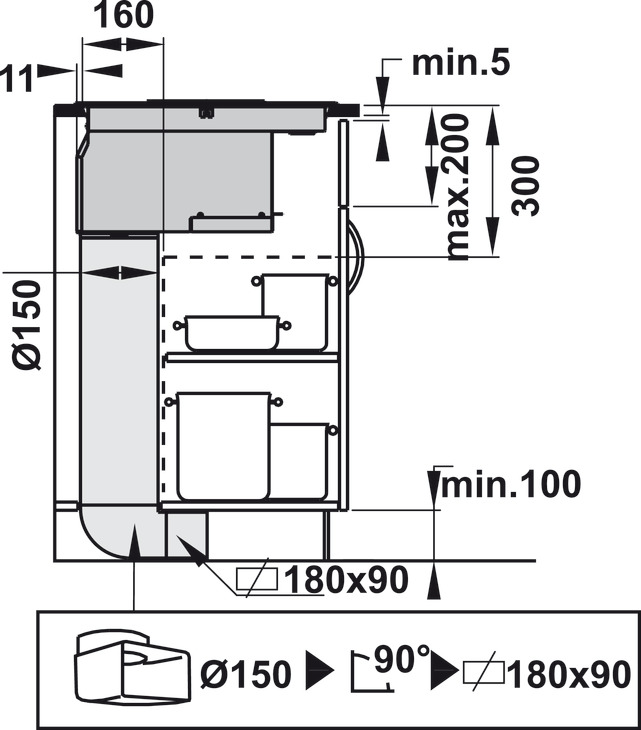 Cửa thoát khí ra ngoài của bếp từ kết hợp hút mùi Hafele HC-IHH77D | 536.61.655 có đường kính 150mm, khi lắp đặt sẽ được nối với ống dẫn khí ra môi trường bên ngoài đảm bảo những mùi thức ăn dầu mỡ khó chịu được hút xả qua đường ống thoát một cách dễ dàng nhất.