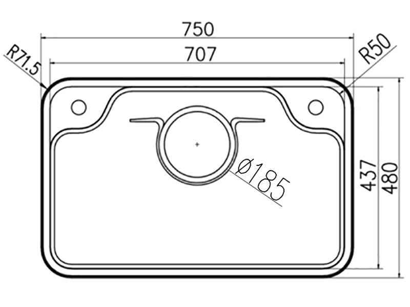 - Kích thước khoét đá lắp âm: R707 x S437 (mm) | Góc lượn R50.