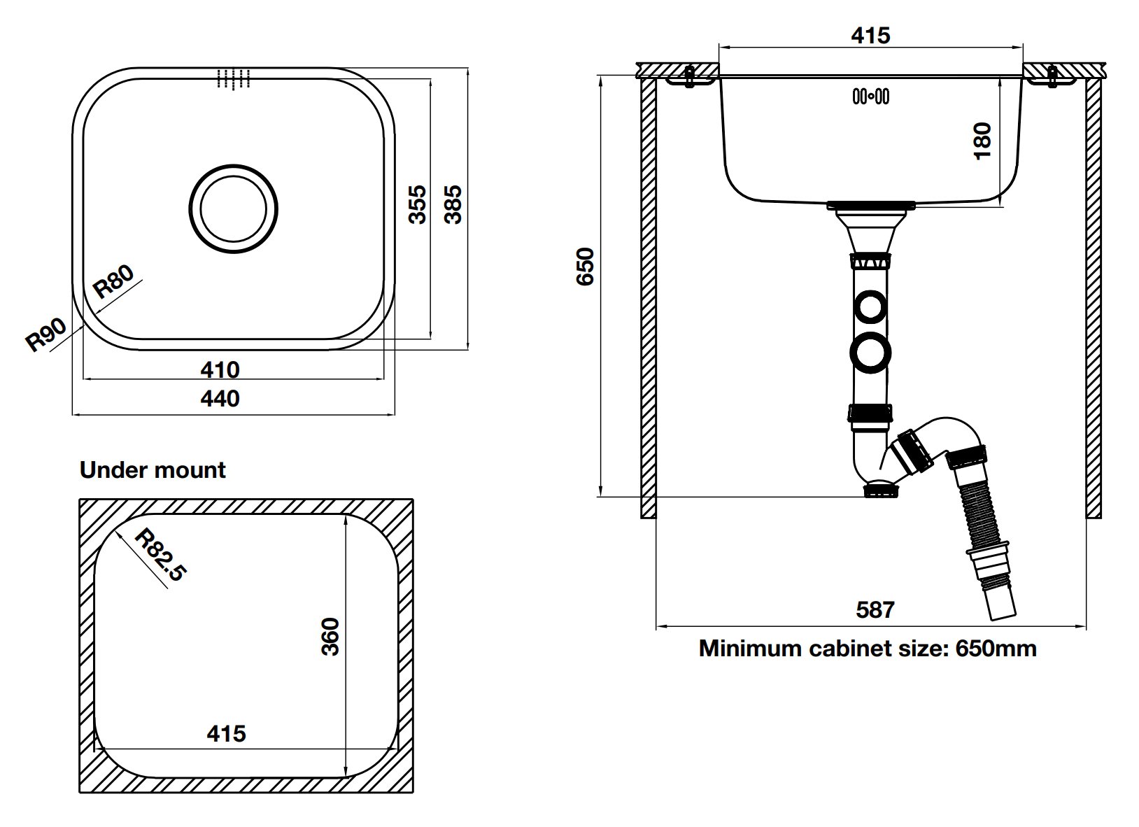 Under Mount | Âm bàn: Lắp đặt thành chậu dưới mặt bàn.
