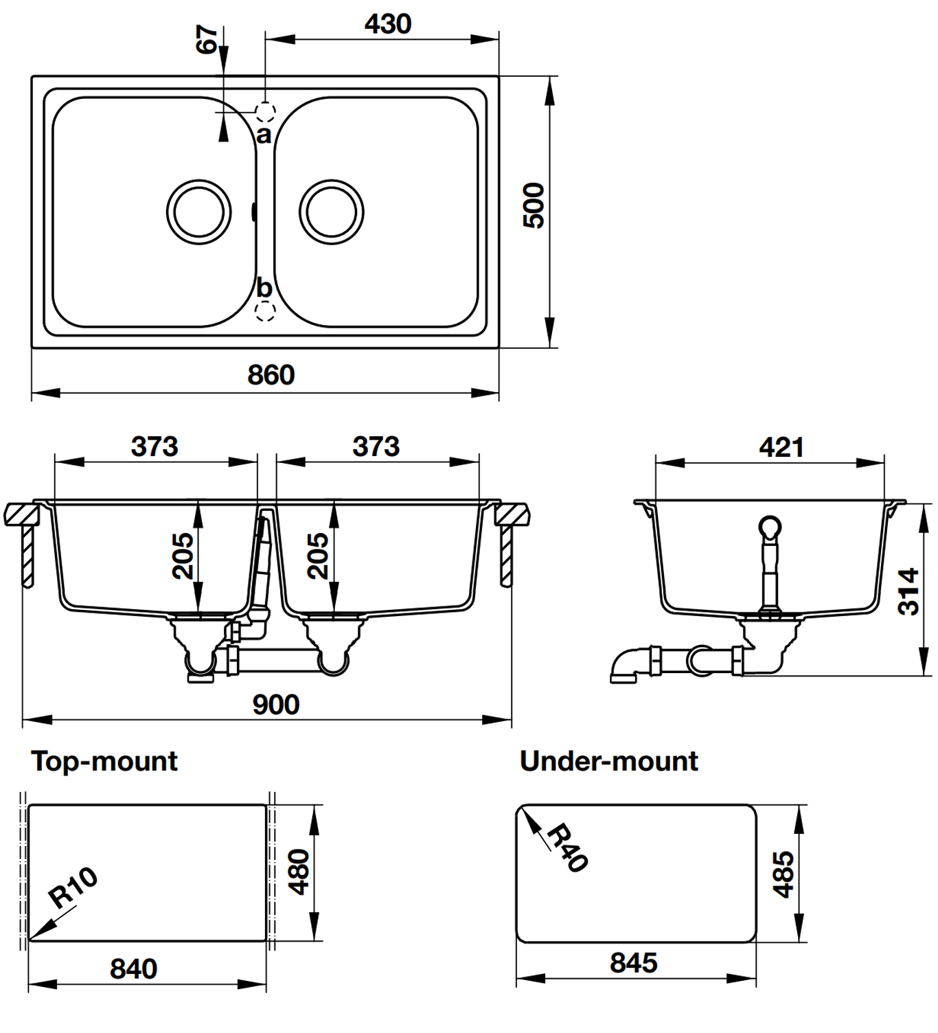 - Kích thước cắt đá lắp âm: R845 x S485 mm