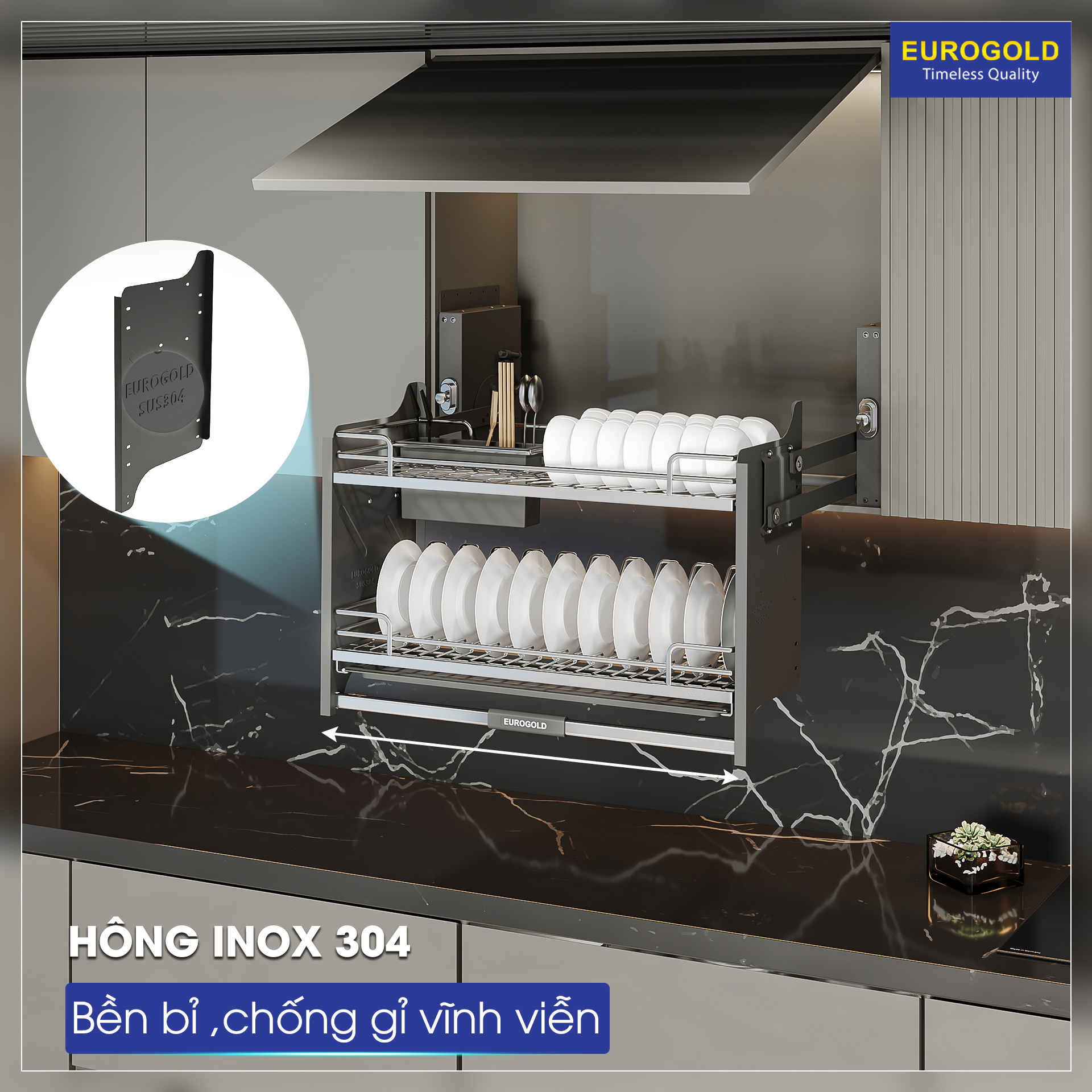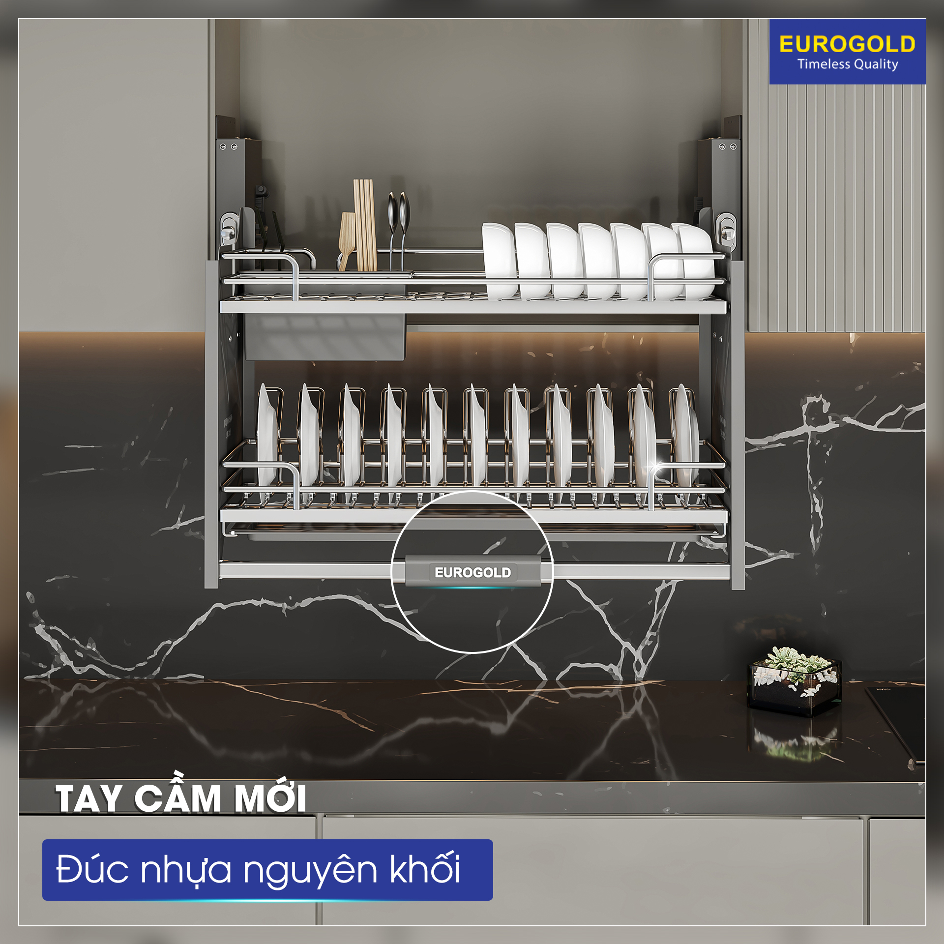 Phụ kiện bếp hiện đại không chỉ mang lại cho bạn sự tiện lợi mà còn giúp “nâng tầm đẳng cấp” cho căn bếp nhà bạn. Giá bát đĩa nâng hạ Eurogold là một trong Top 10 những phụ kiện tủ bếp thông minh được người tiêu dùng lựa chọn nhiều nhất cho tủ bếp gia đình.