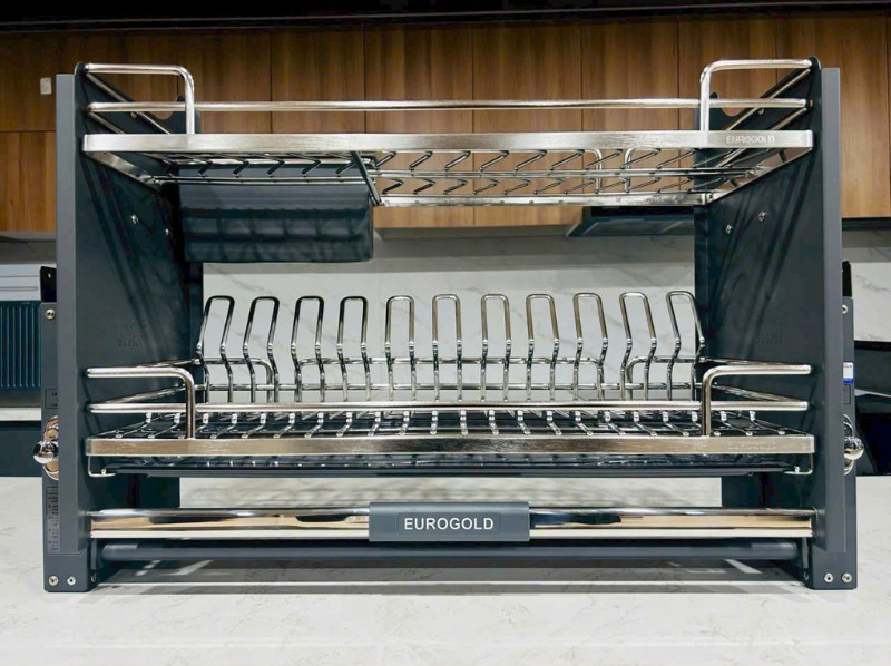 Đặc biệt giá nâng hạ bát đĩa Full Inox 304 nan Oval 900mm Eurogold EPV9090Pro | EPO9390 | EPO9390LX thiết kế thân thiện với mọi chiều cao khiêm tốn từ người già cho đến trẻ nhỏ.