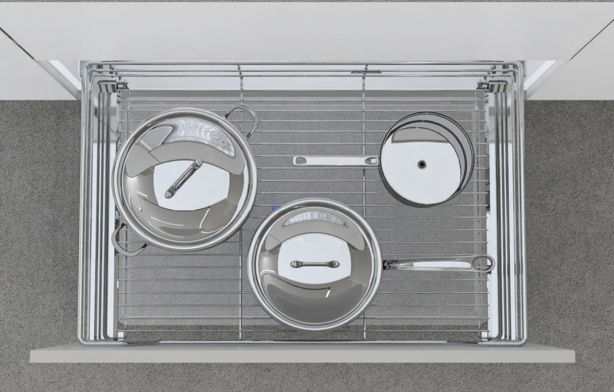 Với bộ gá này bạn có thể lắp đặt thêm cánh kéo với mọi chất liệu (gỗ, nhôm,...) theo đúng sở thích của bạn. Chỉ trong tích tắc thì giá để xoong nồi của bạn có thể hô biến thành một ngăn kéo thật linh hoạt, gọn gàng, đẹp mắt và vô cùng đồng bộ, sang trọng.