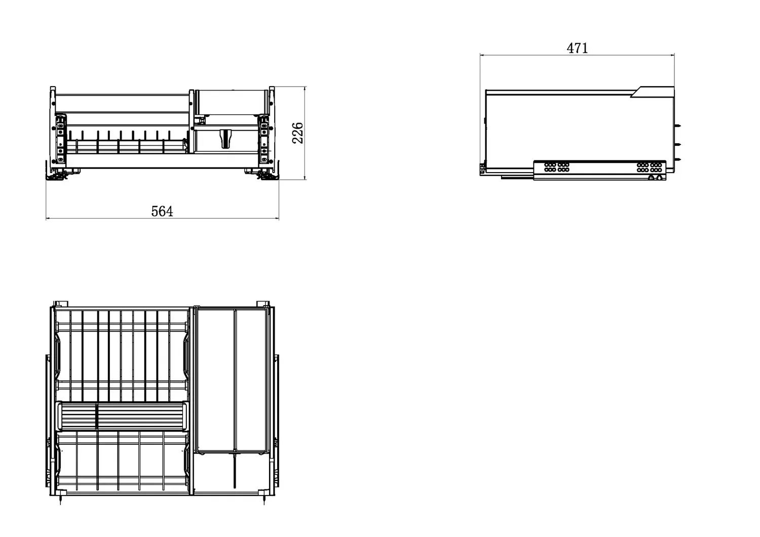 Cấu trúc độc đáo của giỏ kéo ra, có khay đựng dao kéo bên trong dạng trượt, cải thiện tỷ lệ sử dụng không gian. Giá đựng bát đĩa, hộp đựng dao và dĩa có thể di chuyển, tiện lợi và linh hoạt. Cấu trúc lắp đặt nhanh cho cửa tủ, dễ dàng và thuận tiện khi lắp đặt.