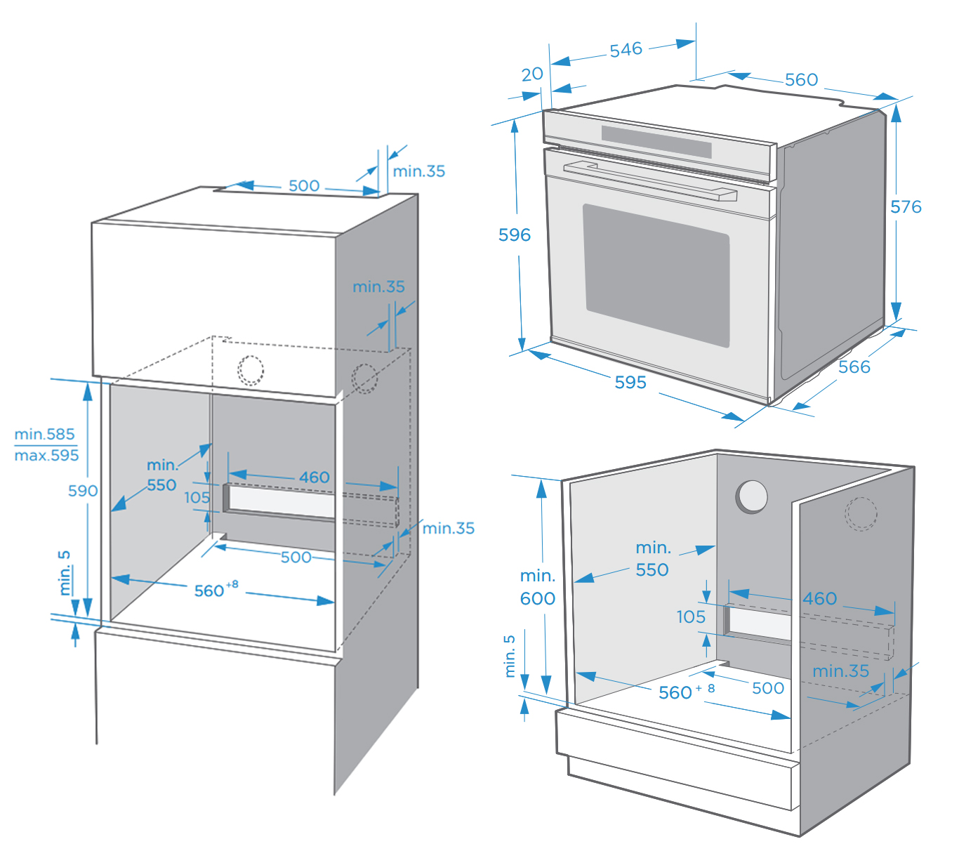 - Khe thoát gió phía sau cách vách tủ tối thiểu 35mm