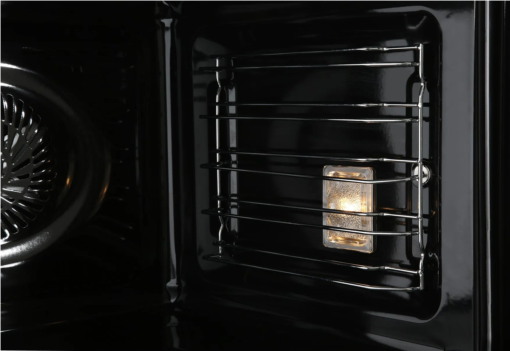 Sở hữu mặt kính cường lực màu đen phối Inox sang trọng, lò nướng âm tủ GrandX GX75V8 không chỉ tạo điểm nhấn thẩm mỹ mà còn chống bám vân tay hiệu quả, giữ cho bề mặt luôn sạch sẽ như mới. Bên trong khoang lò được tráng men chống dính, dễ vệ sinh, kết hợp cùng hệ thống đèn Halogen chiếu sáng nội thất giúp bạn dễ dàng theo dõi món ăn trong quá trình nấu.