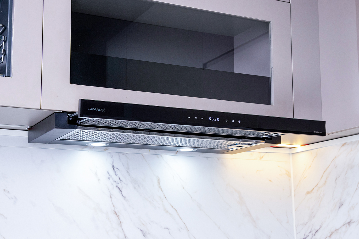 Máy hút mùi âm tủ màu đen 90cm GrandX GX H90F58B sở hữu kiểu dáng Tornado Telescopic hiện đại, sang trọng, mang đến điểm nhấn ấn tượng cho không gian bếp của bạn. Kiểu dáng này không chỉ tạo nên sự sang trọng, tinh tế mà còn giúp tiết kiệm diện tích và dễ dàng vệ sinh.