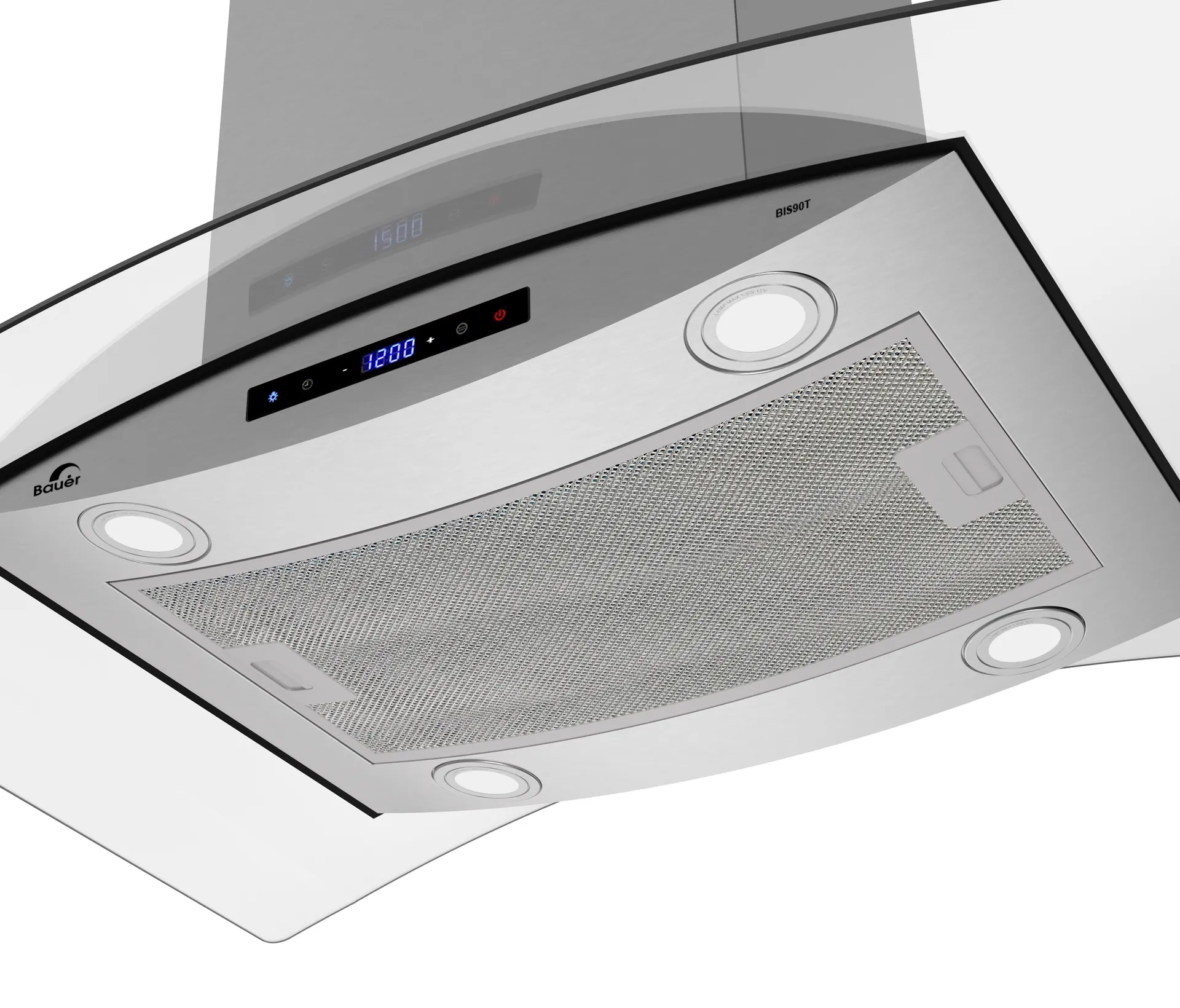Máy hút mùi độc lập kính cong 90cm Bauer BIS90TS tự hào tích hợp nhiều ưu điểm nổi trội về kích thước, kiểu dáng và công suất hút, tạo nên một máy hút mùi có hiệu quả tối ưu cho đa dạng không gian bếp.