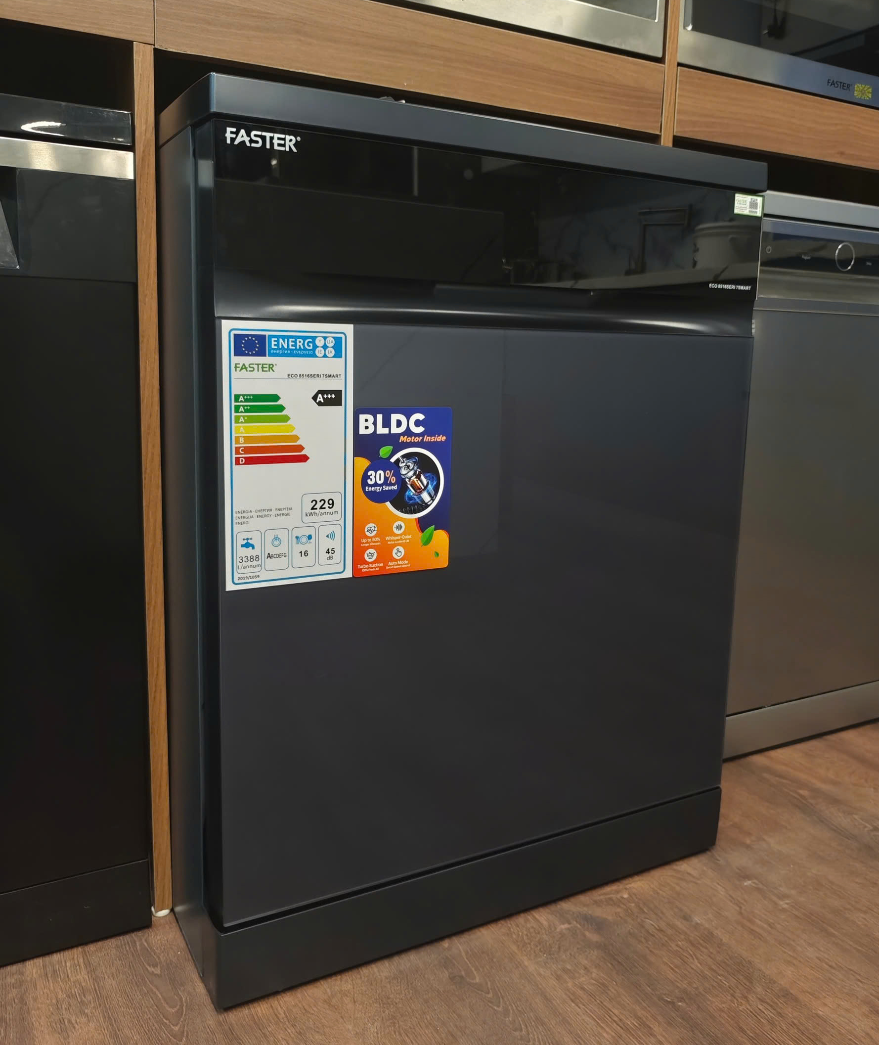 Máy rửa bát độc lập thông minh AI | Faster ECO 8516 SERI 7 SMART | cửa kính chống bám vân tay | màu xám | 16-18 bộ | nhập khẩu nguyên chiếc từ Malaysia | sấy khô triệt để | diệt khuẩn tối ưu | lưu trữ hoàn hảo | dễ dàng vệ sinh | cùng hsn.vn tìm hiểu kỹ hơn về sản phẩm này