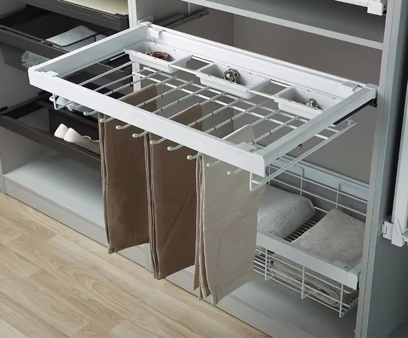 Sự kết hợp thông minh cho phép bạn vừa bảo quản quần âu vừa là nơi cất trang sức hay những phụ kiện cá nhân một cách gọn gàng khoa học.